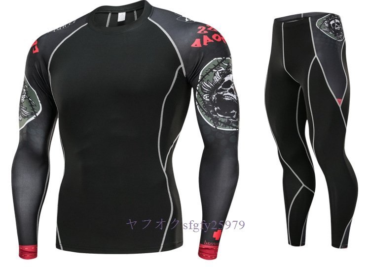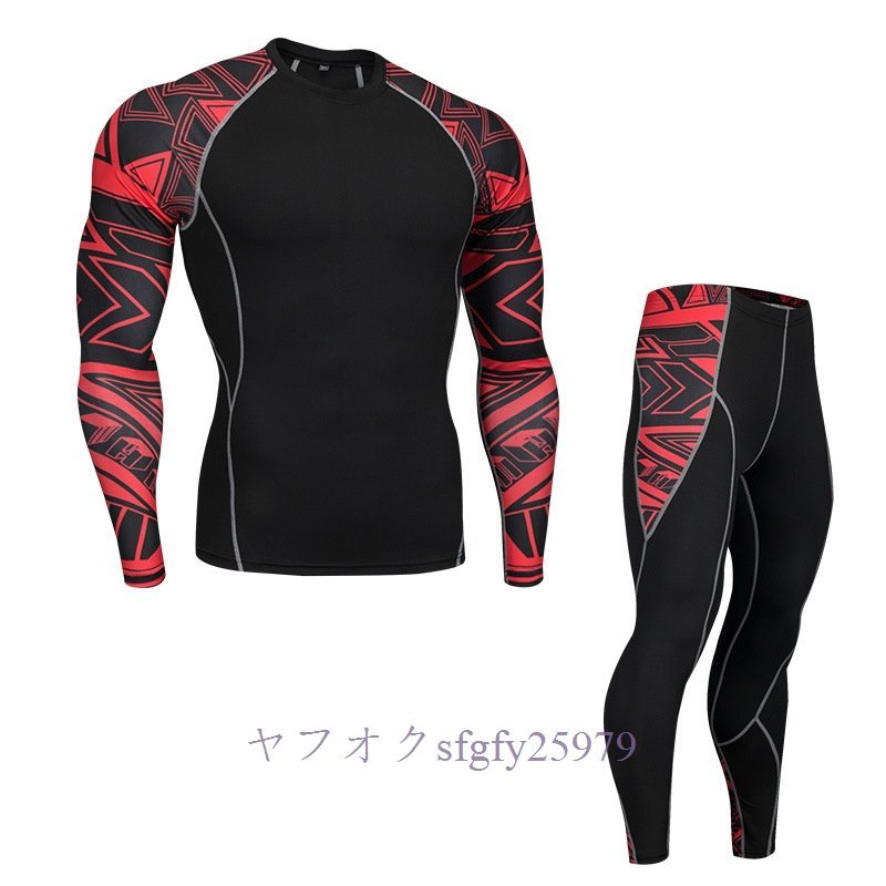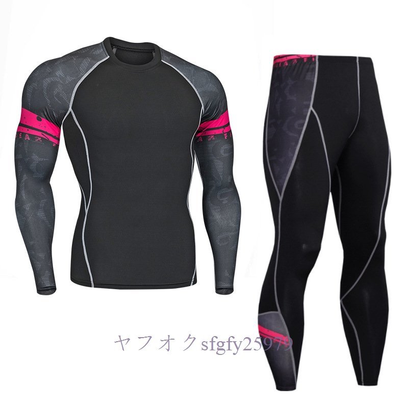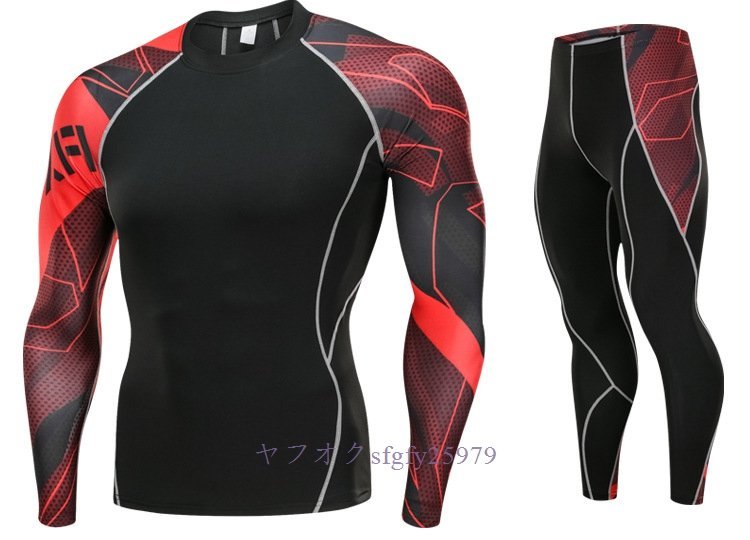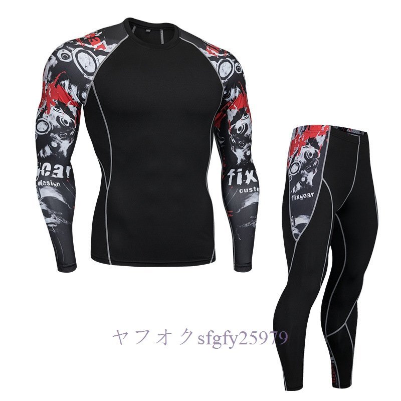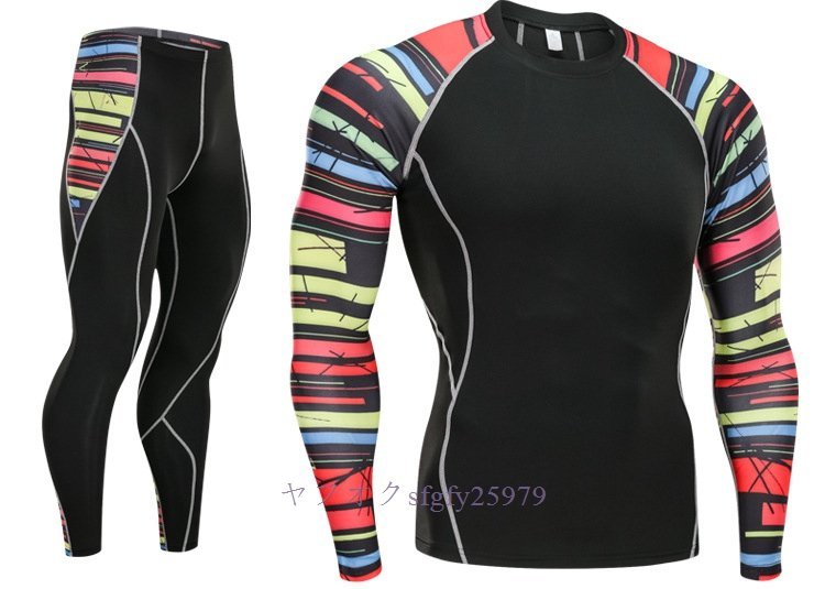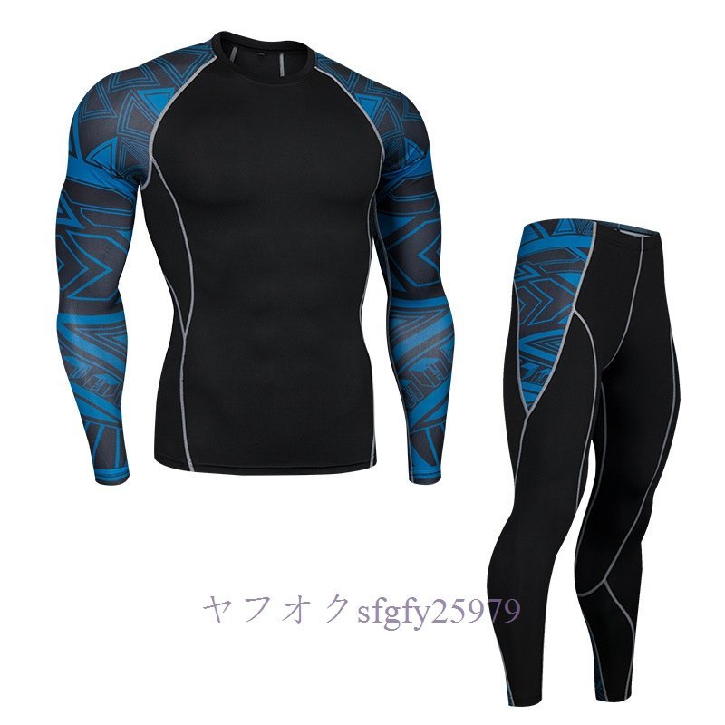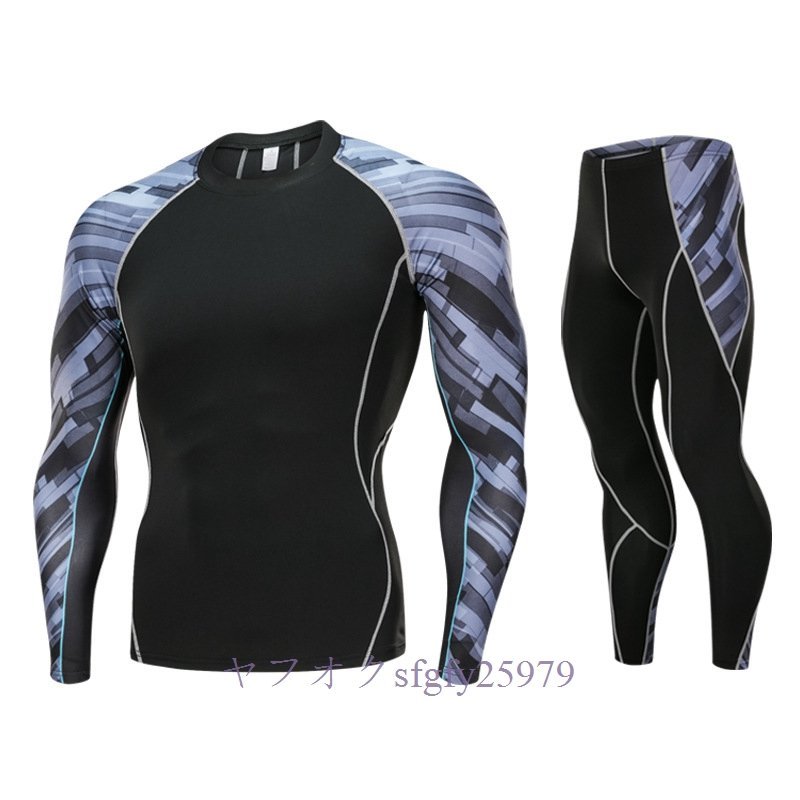 A323I☆新品人気 メンズコンプレッションウェア ジャージ 上下セット 加圧インナー フィットネス ロングタイツ アンダーシャツ 速乾H