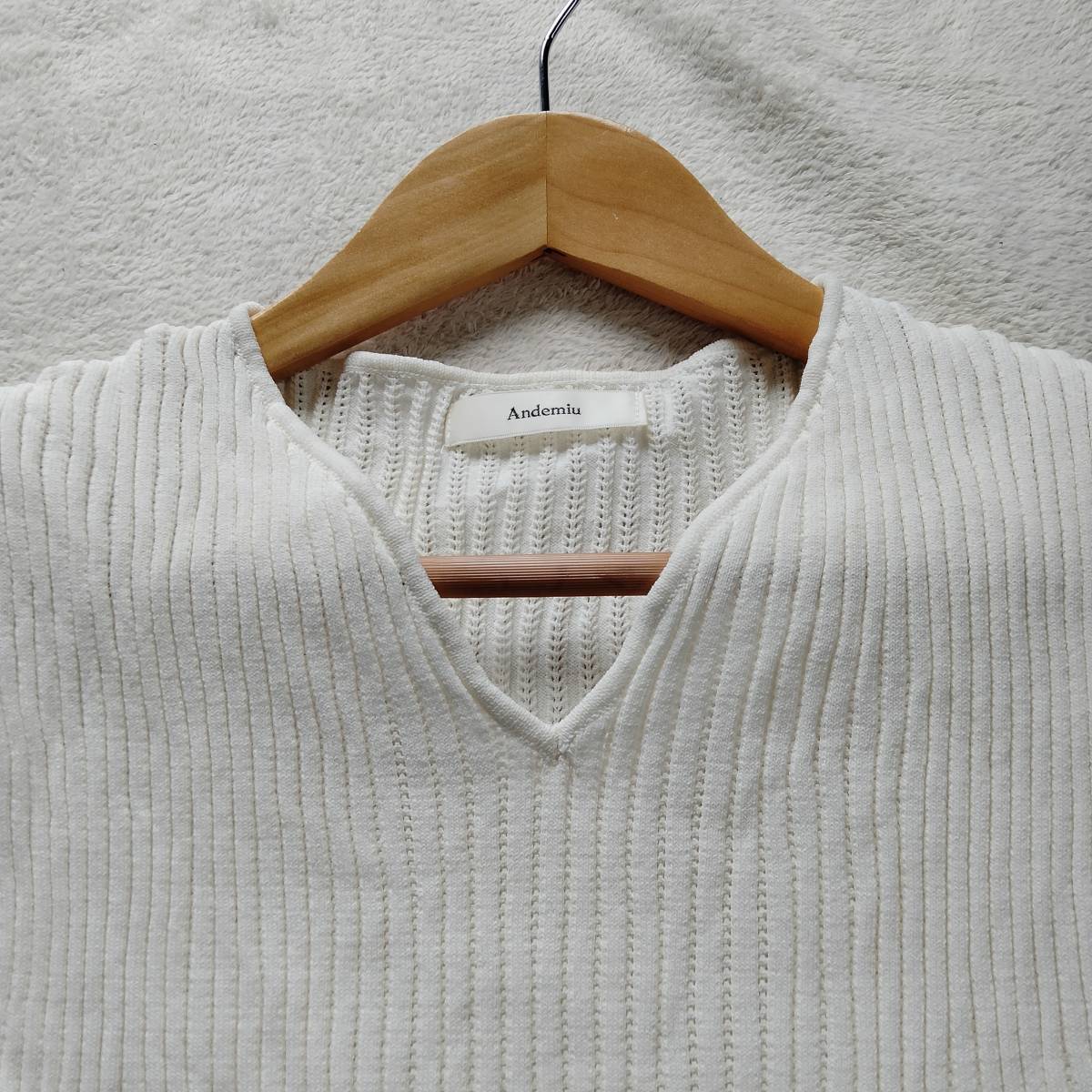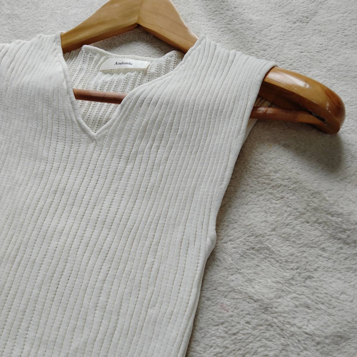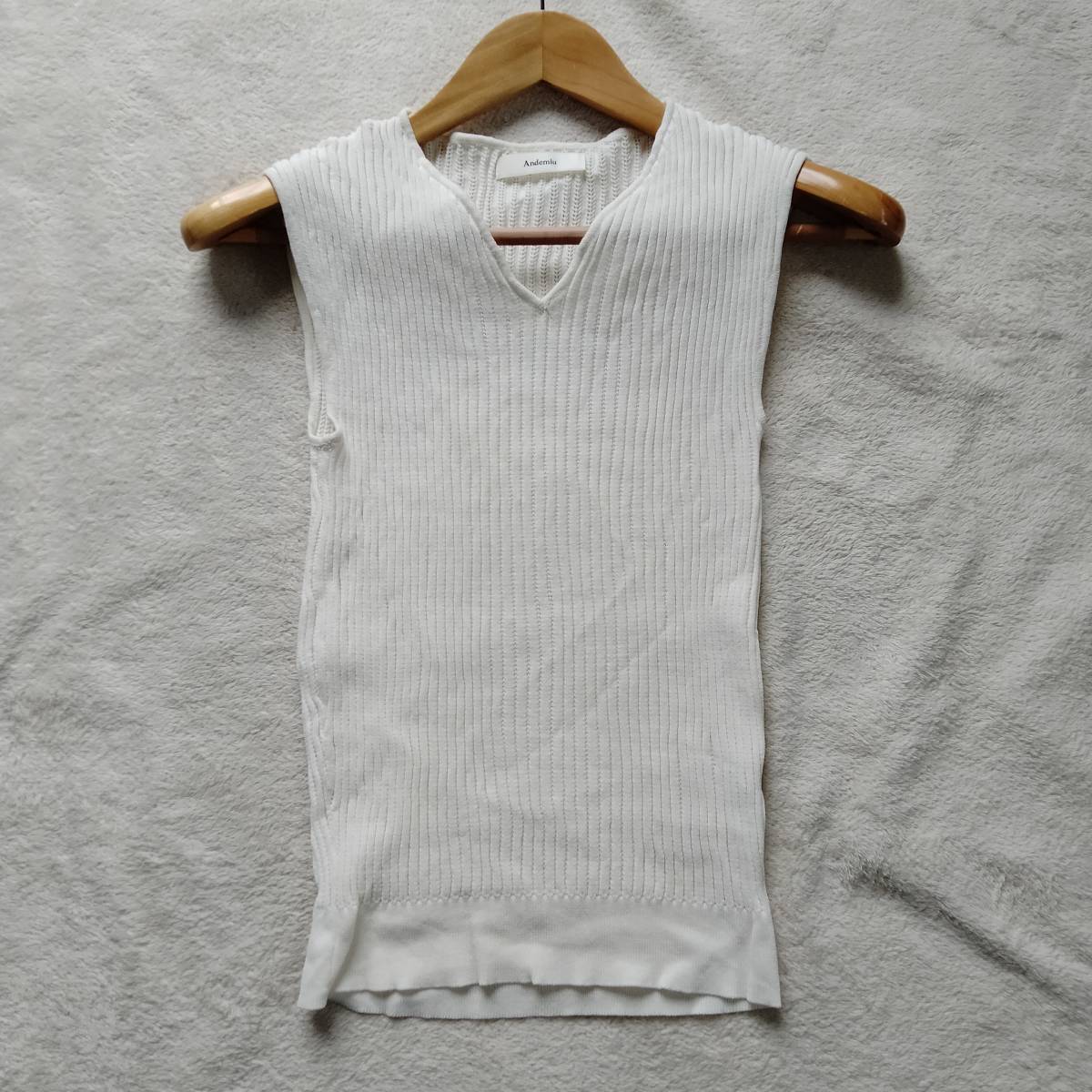 Andemiu アンデミュウ ノースリーブ リブ ニット トップス Vネック 無地 ショート丈 レディース ホワイト フリーサイズ smm13