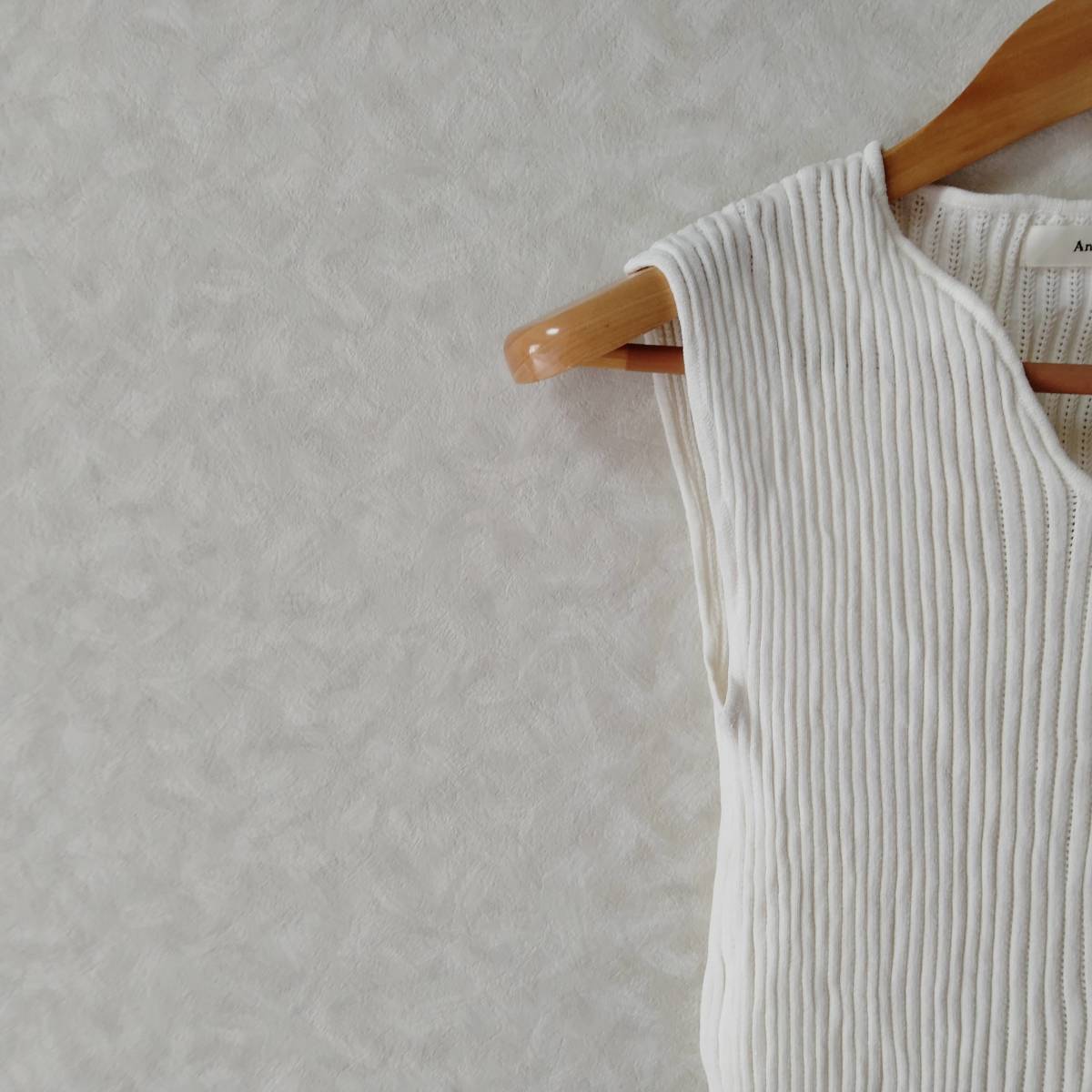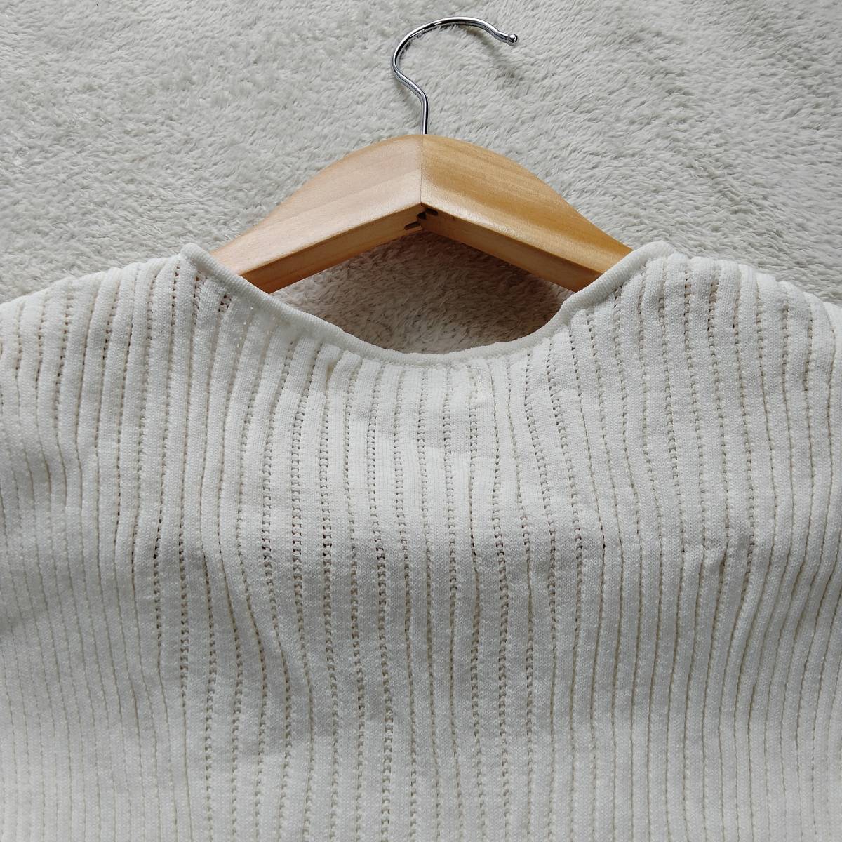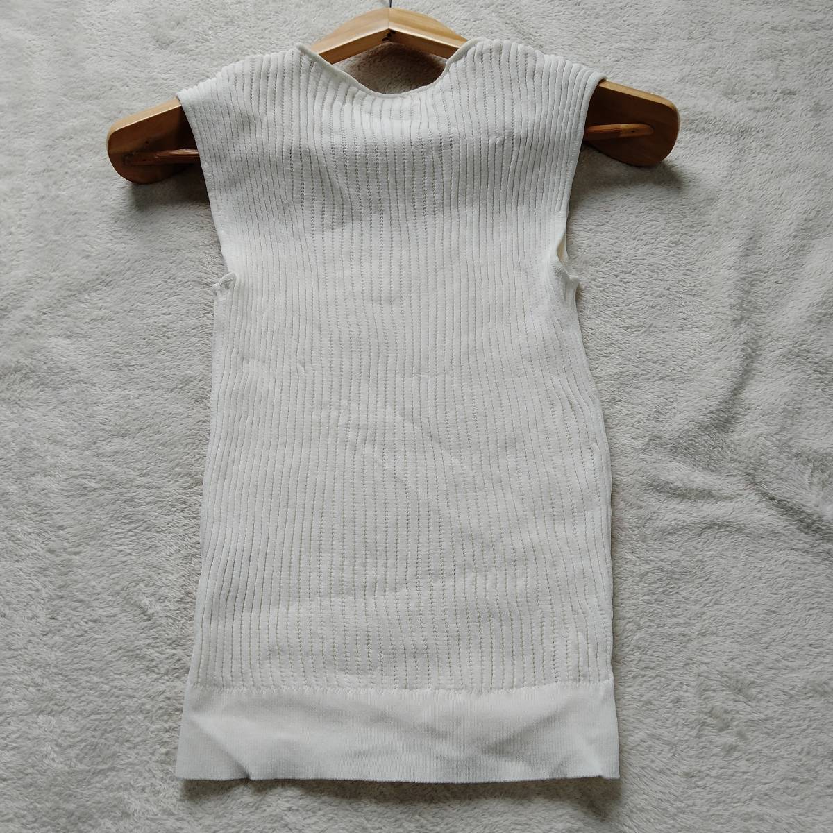 Andemiu アンデミュウ ノースリーブ リブ ニット トップス Vネック 無地 ショート丈 レディース ホワイト フリーサイズ smm13