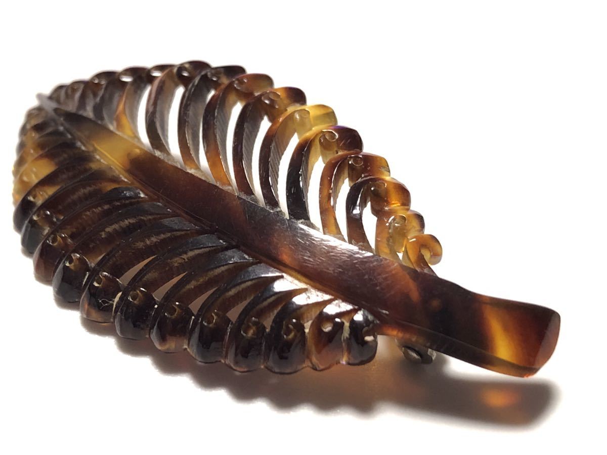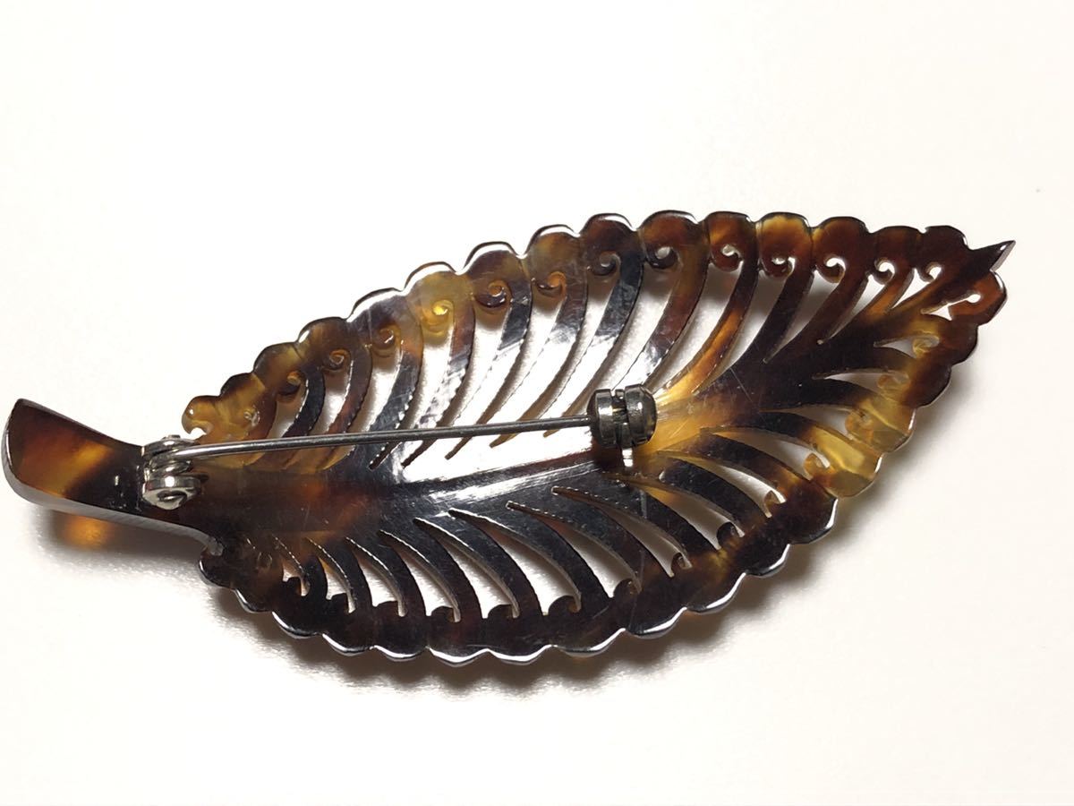 アンティークの本鼈甲を使用した、細密透かし葉細工のブローチです。鼈甲部分に欠けや虫食いはありません。