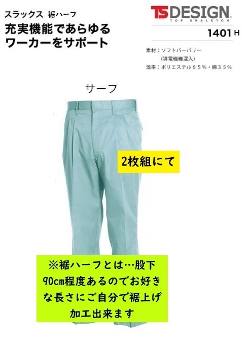 ビックイナバ特価◇TSDESIGN 1401H裾ハーフ[春夏]スラックス【32サーフ・W73cm】ソフトバーバリー・定価1枚7040円の品、2枚即決2980円