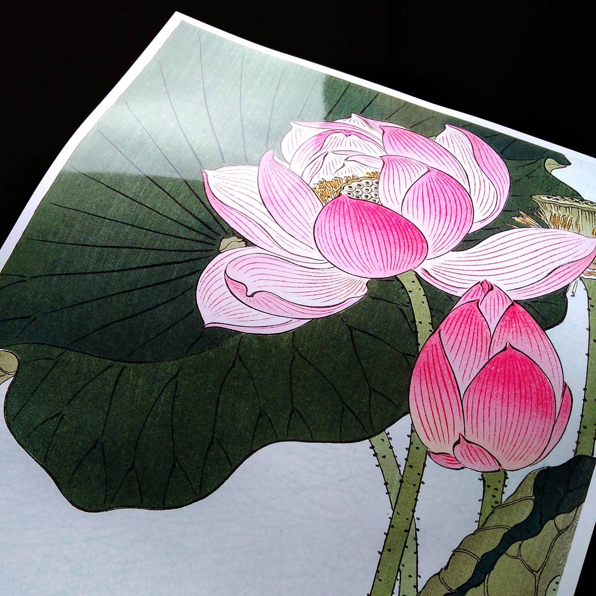 小原古邨 『睡蓮 花』浮世絵 アート 光沢 ポスター A3 バー カフェ クラシック レトロ インテリア 日本画 仏教 植物 ロータスフラワー 仏間