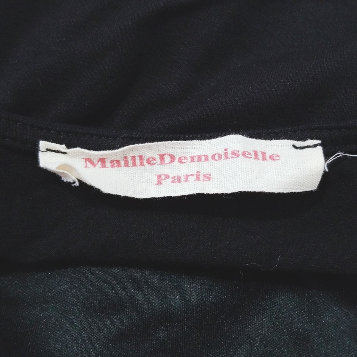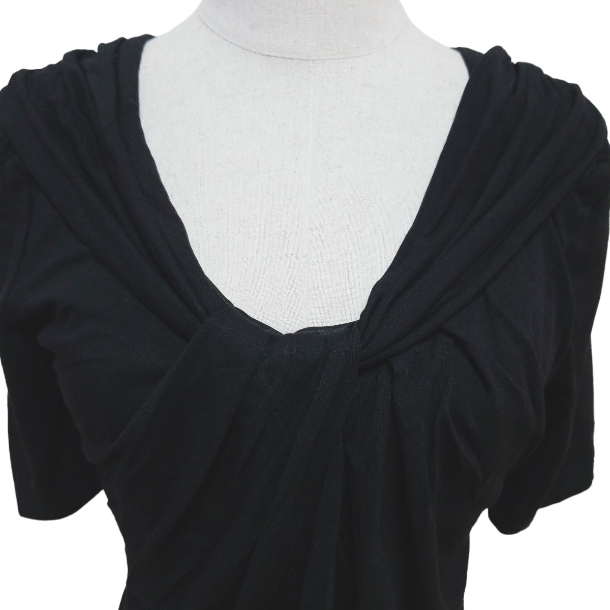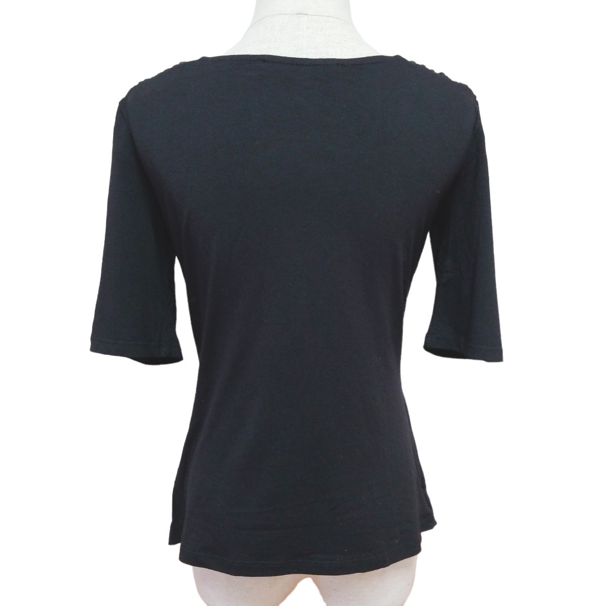 Y389【美品】Maille Demoiselle マドモアゼル フランス製 ストレッチ デザインカットソー トップス 半袖 レディース M相当 ブラック 黒