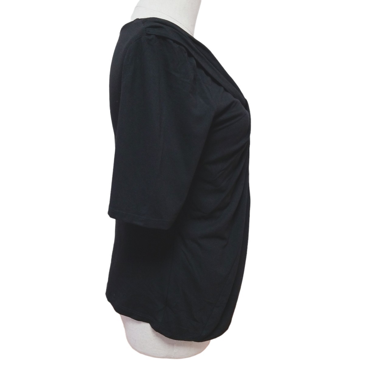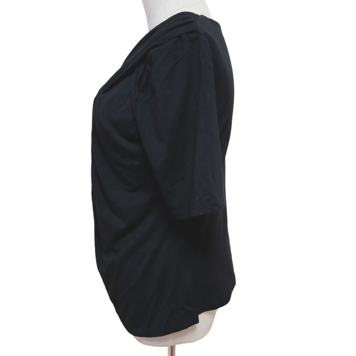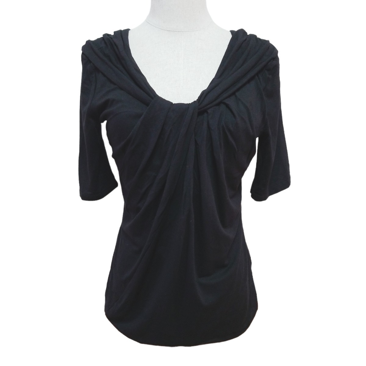 Y389【美品】Maille Demoiselle マドモアゼル フランス製 ストレッチ デザインカットソー トップス 半袖 レディース M相当 ブラック 黒
