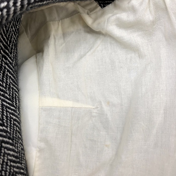 商品状態・ディテールなど | (※実測寸法など、多少の誤差はご容赦下さい。) (※商品は全て畳んで保管しております。保管による畳み皺などはございます。その点ご了承下さい。) ●気になったダメージの場所と種類: ・所々:- ・全体:- ・肩:- ・襟:- ・胸:- ・腹部:- ・裾:- ・右袖:- ・左袖:- ・袖口:- ・背中(上):- ・背中(下):- ・内側:裏地に若干薄小シミの箇所 ●その他ディテール:ボタン留め ●付属品など:- ●その他:- |