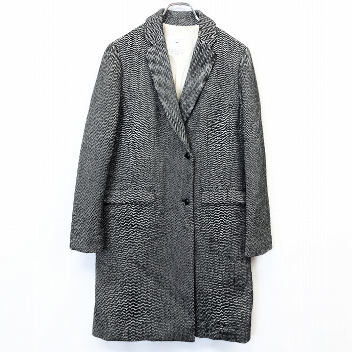 商品タイトル | LOST DESSAU nano・universe ロストデッサウ ナノユニバース 36 レディース チェスターコート ヘリンボーン 裏地付き 長袖 麻×毛など 黒 |