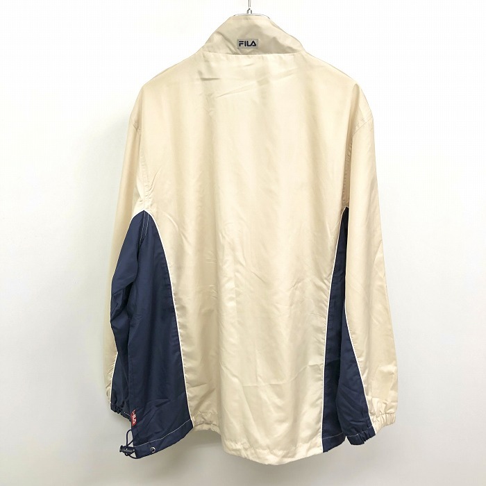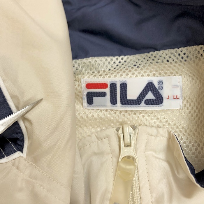 | 商品タイトル | FILA フィラ 2L XL LL メンズ 薄手 ジップアップ ジャケット ブルゾン メッシュ裏地 長袖 ポリ100% アイボリー×ネイビー ベージュ系×紺系 |