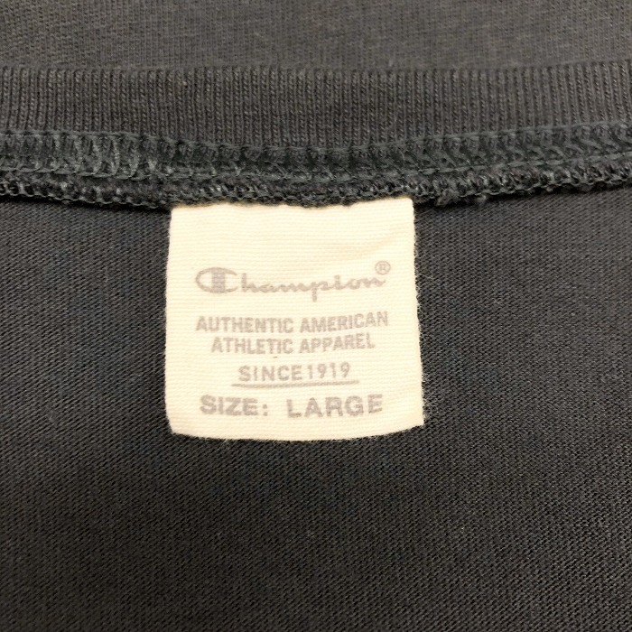 | 商品タイトル | Champion チャンピオン L レディース フットボールシャツ Tシャツ カットソー 英字 フロッキープリント 丸首 半袖 綿100% チャコールグレー |