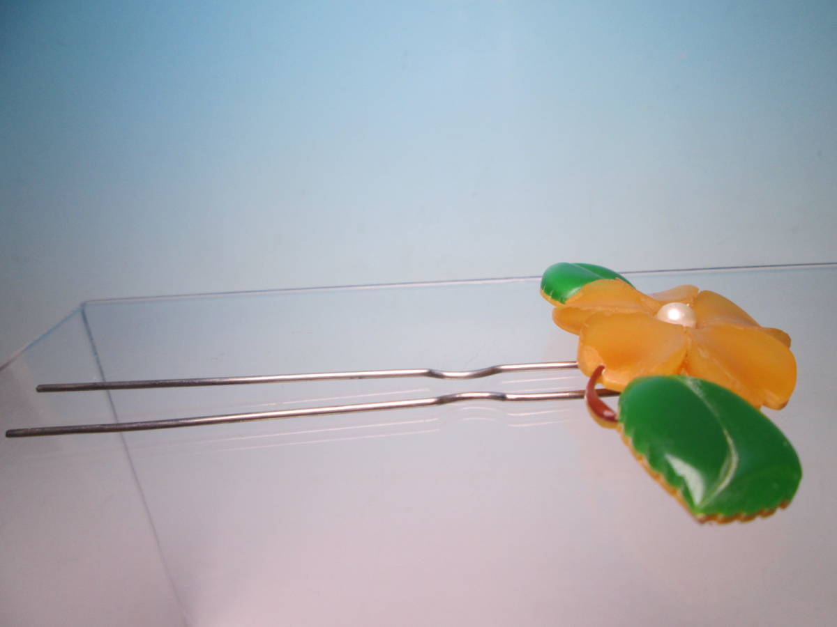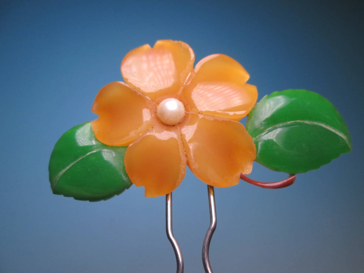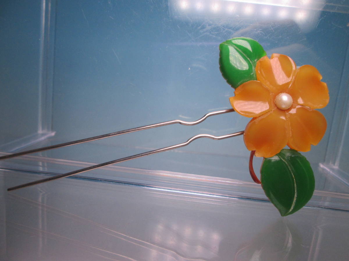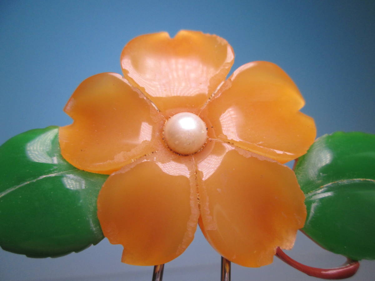 【江月】 アンティーク・小野春 樹脂製 本真珠飾り花のかんざし 木箱付
