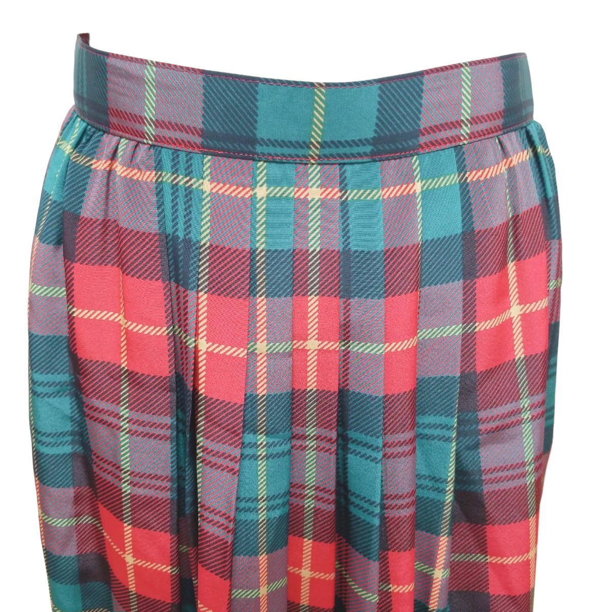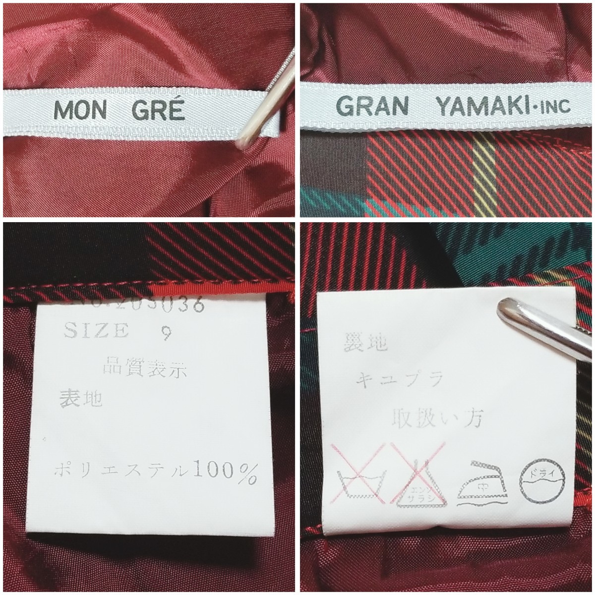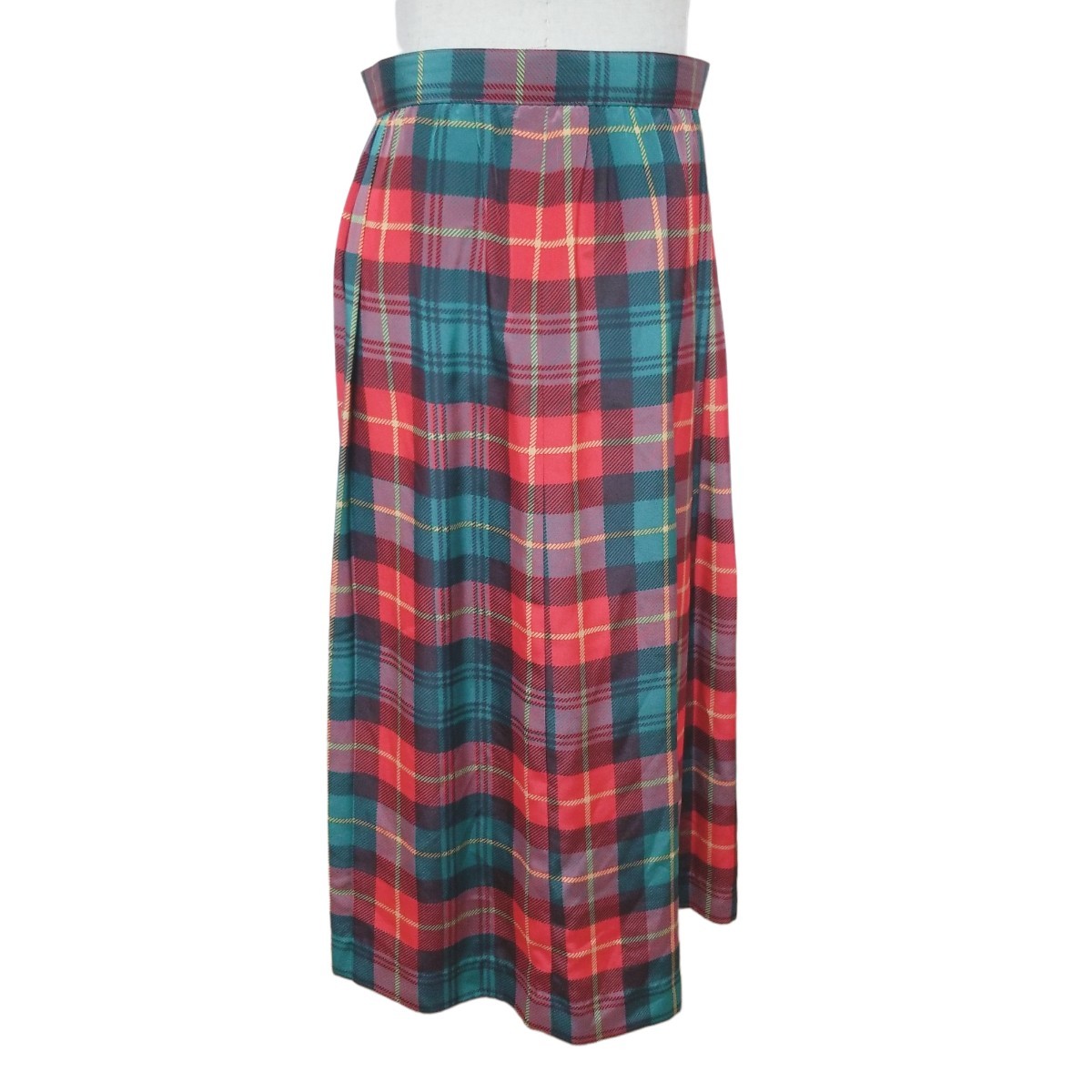 Y450 GRAN YAMAKI グラン山貴 前後プリーツ ひざ下丈スカート タータンチェック レディース 9 M レッド 赤系 グリーン ツルツル 平成レトロ