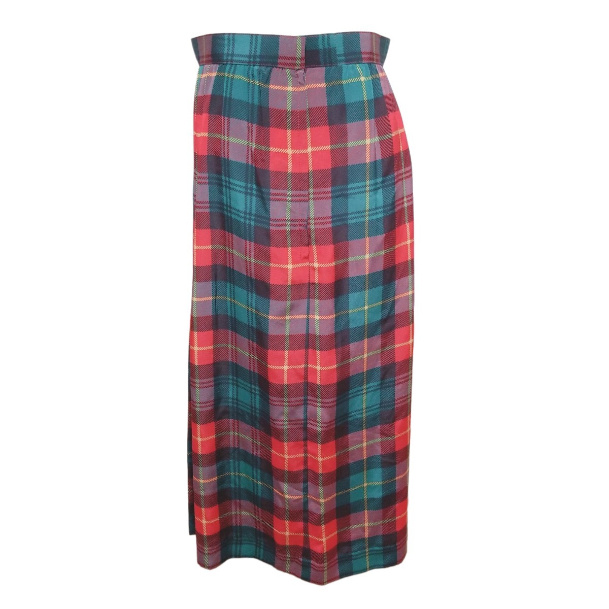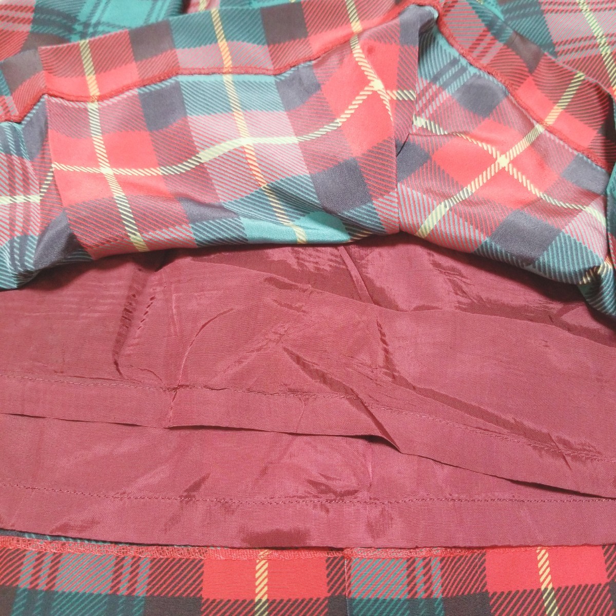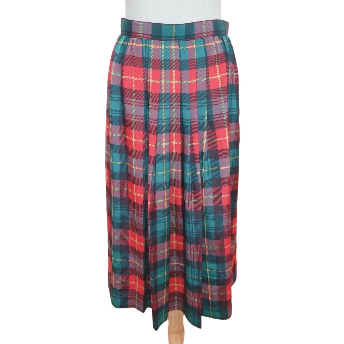 Y450 GRAN YAMAKI グラン山貴 前後プリーツ ひざ下丈スカート タータンチェック レディース 9 M レッド 赤系 グリーン ツルツル 平成レトロ