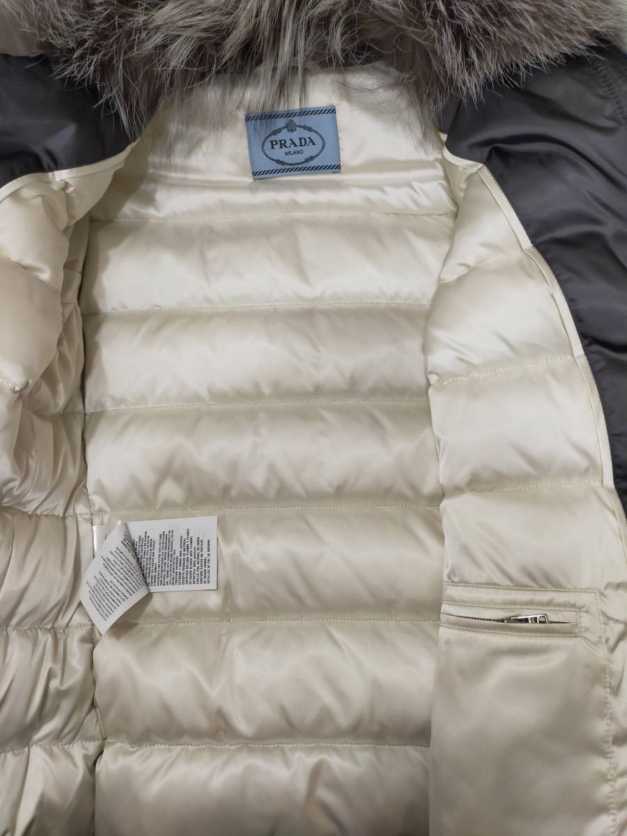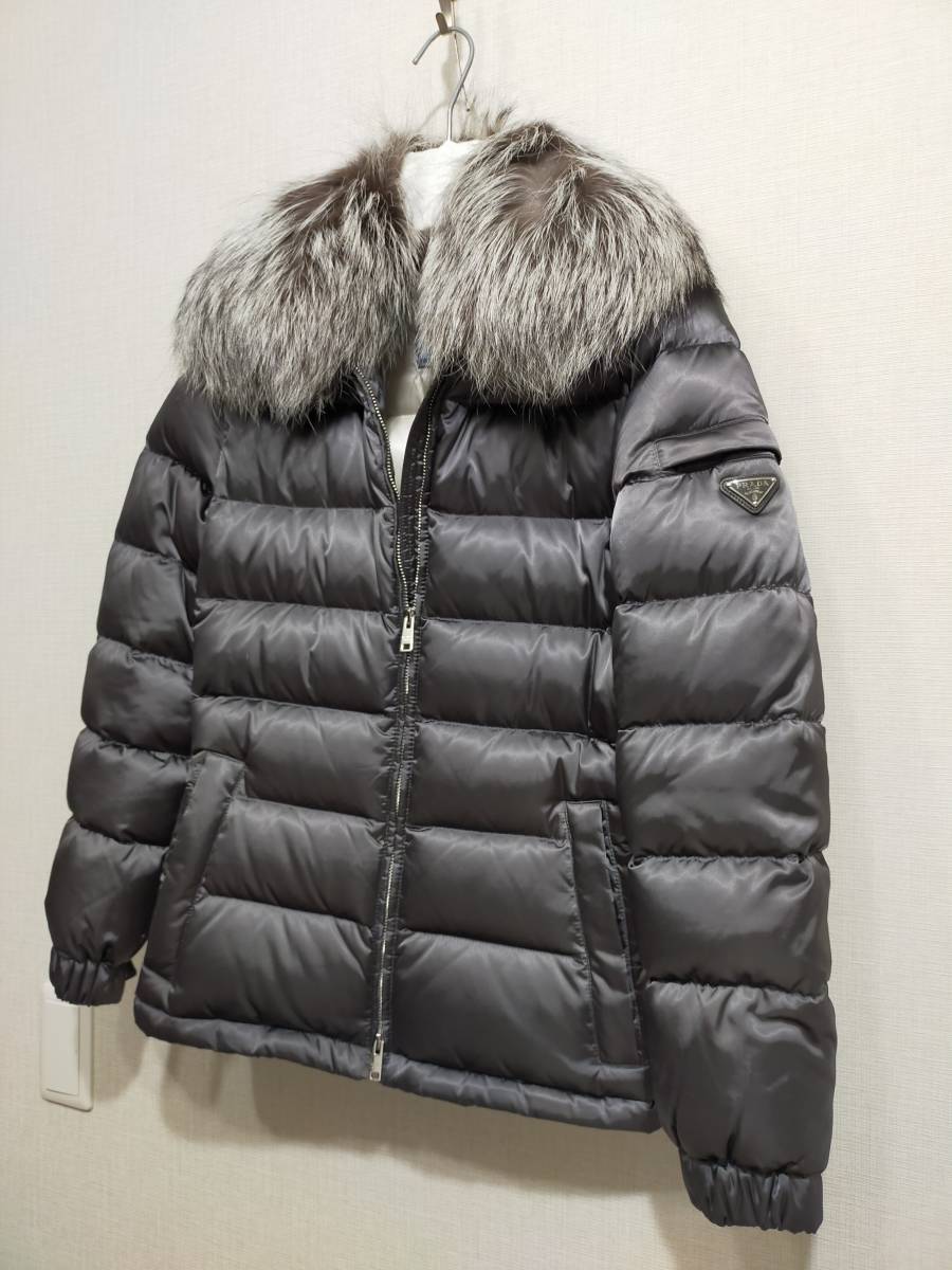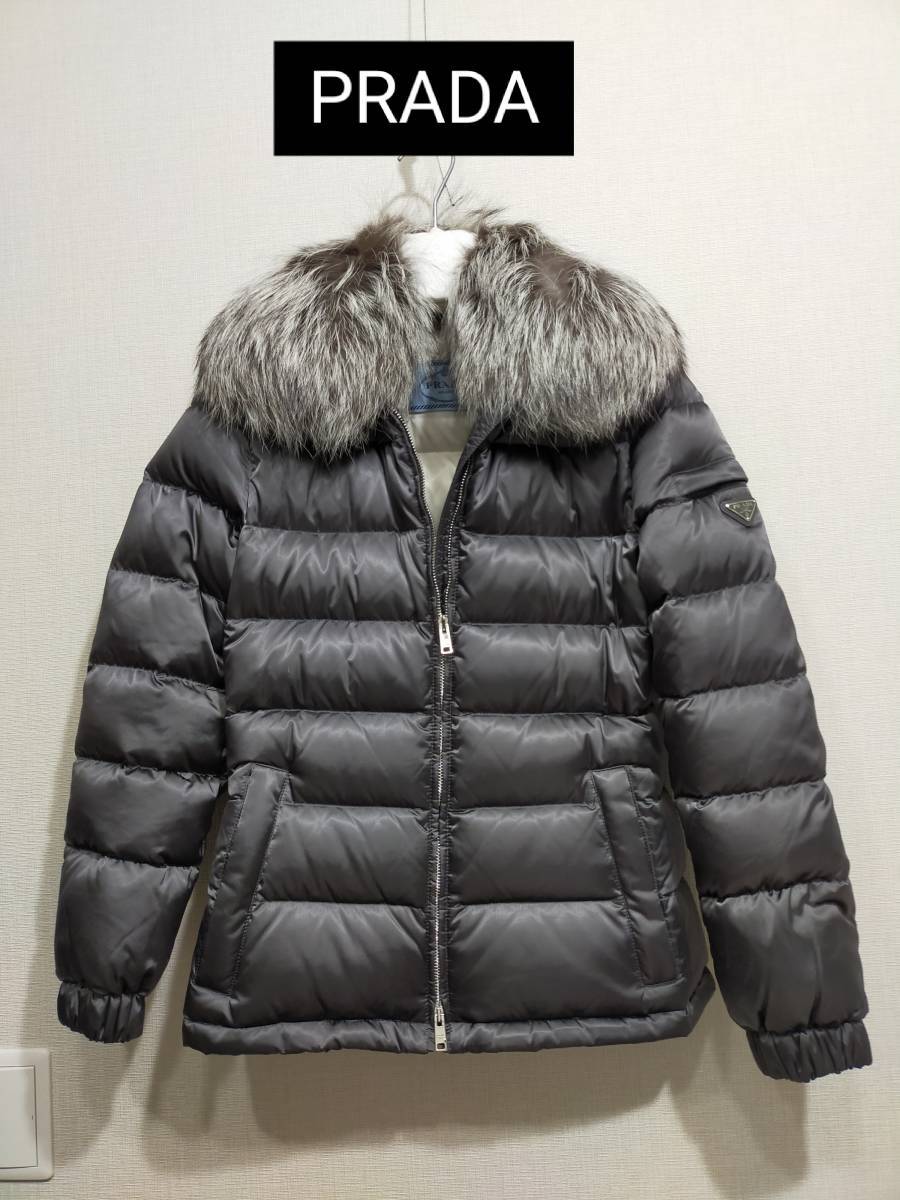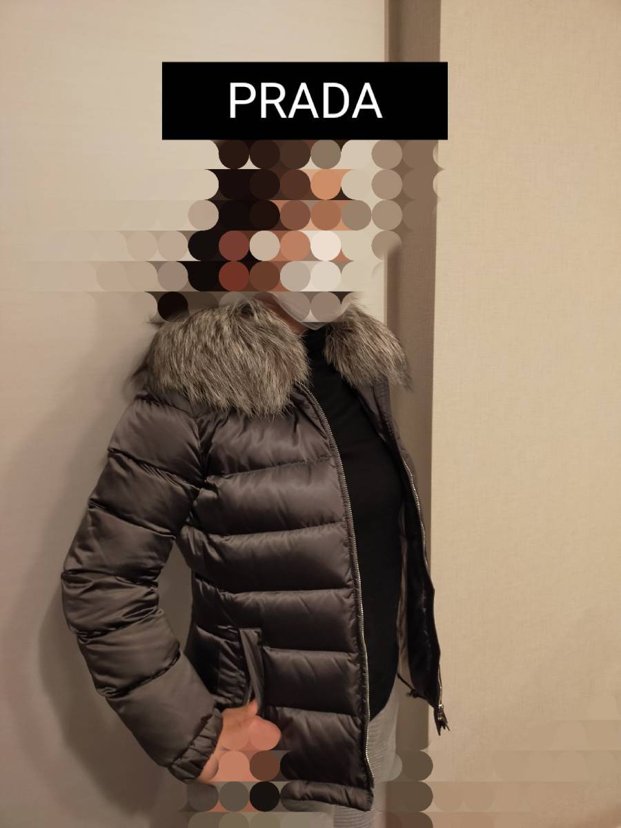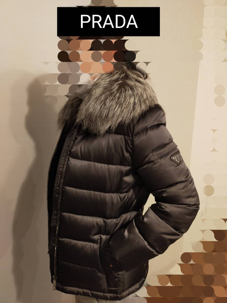 PRADA リアルファー襟付き ダウンジャケット ウエストシェイプのスリムデザイン