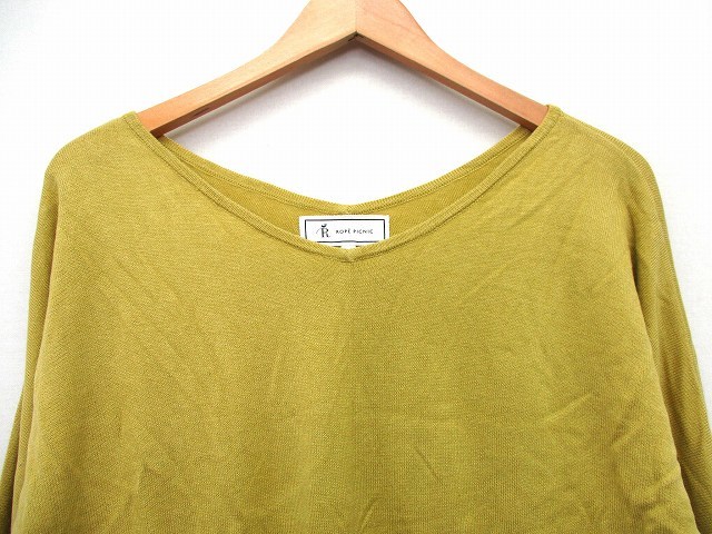 ロペピクニック ROPE Picnic ニット カットソー 無地 シンプル 切替リブ 長袖 Vネック 38 ライム 緑 黄 /HT24 レディース