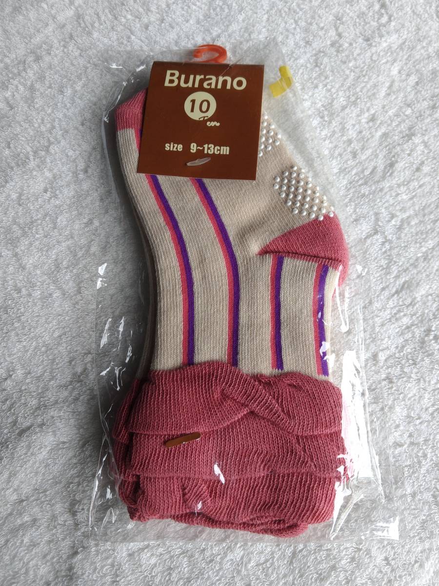新品 ☆Burano☆ 9~13㎝ 靴下 ストライプ柄 肌色 @KB3113