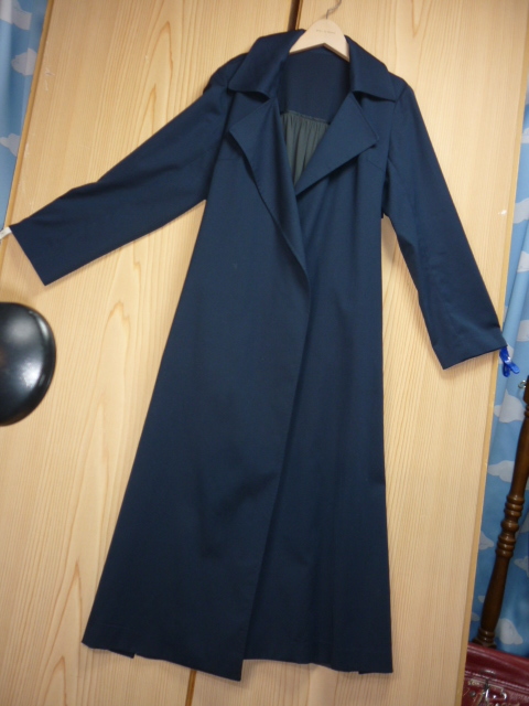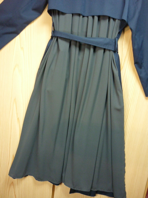 U25★美品★レディース・(前ボタンなし)ロング・(別素材)ドッキング/コート・紺色系★商品詳細は記載文を・・