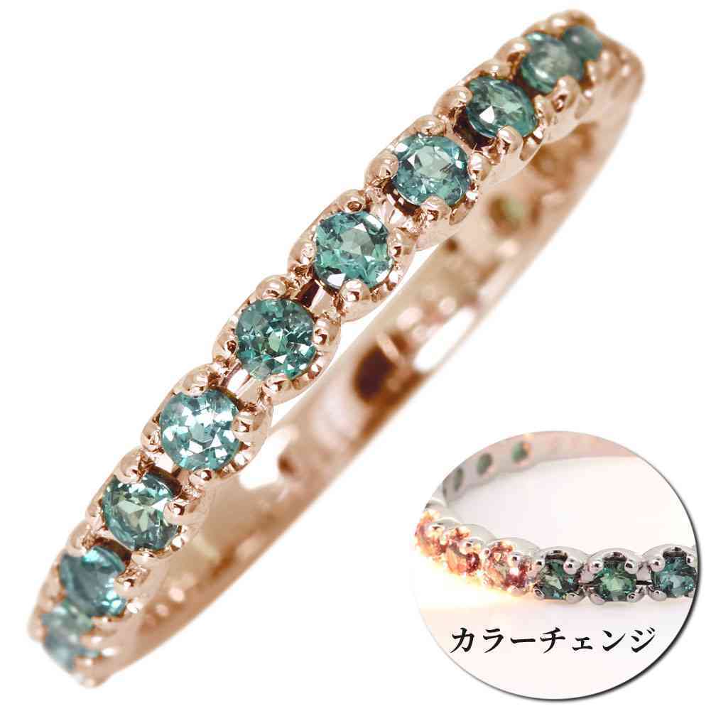 希少石アレキサンドライトを使用した10金製の、ハーフエタニティリング(指輪)です。