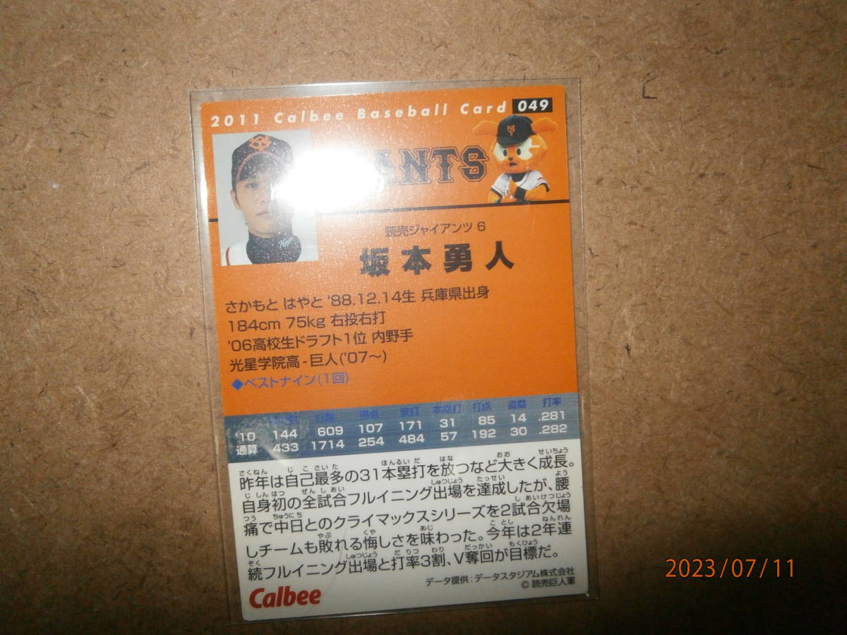 カルビー の プロ野球カード 坂本勇人選手 の 中古カードになります。