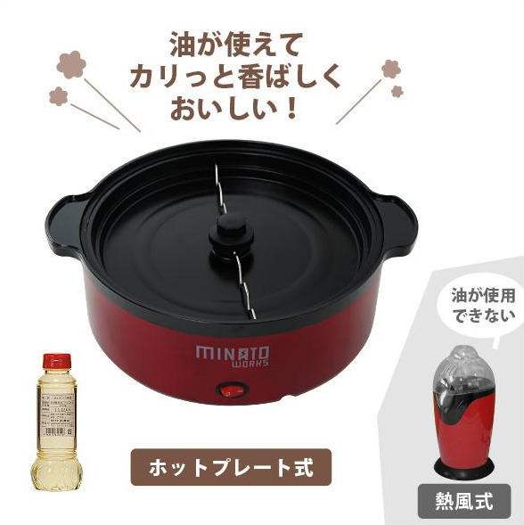 油が使えてカリっと仕上がるホットプレート式のポップコーンメーカー。