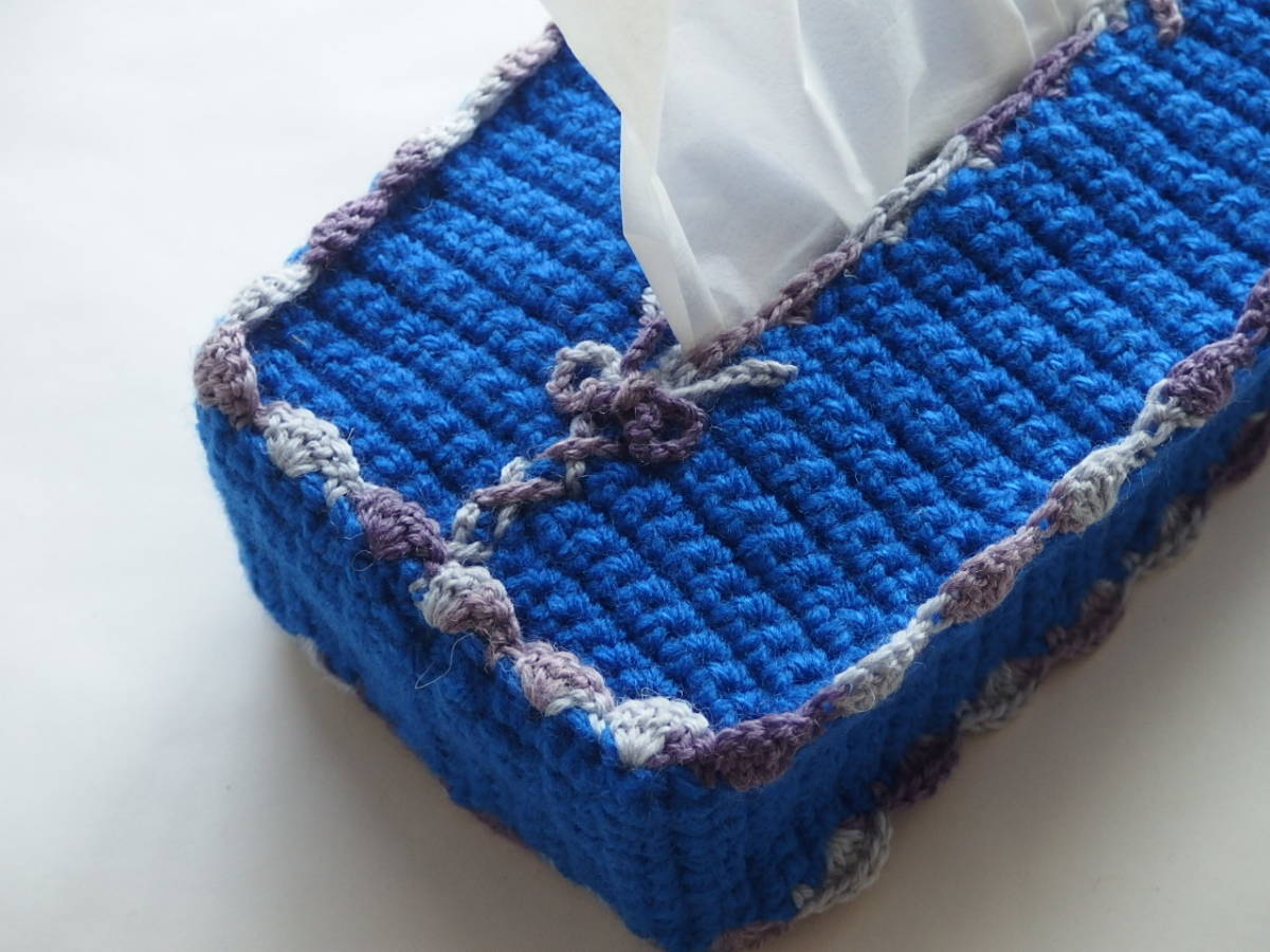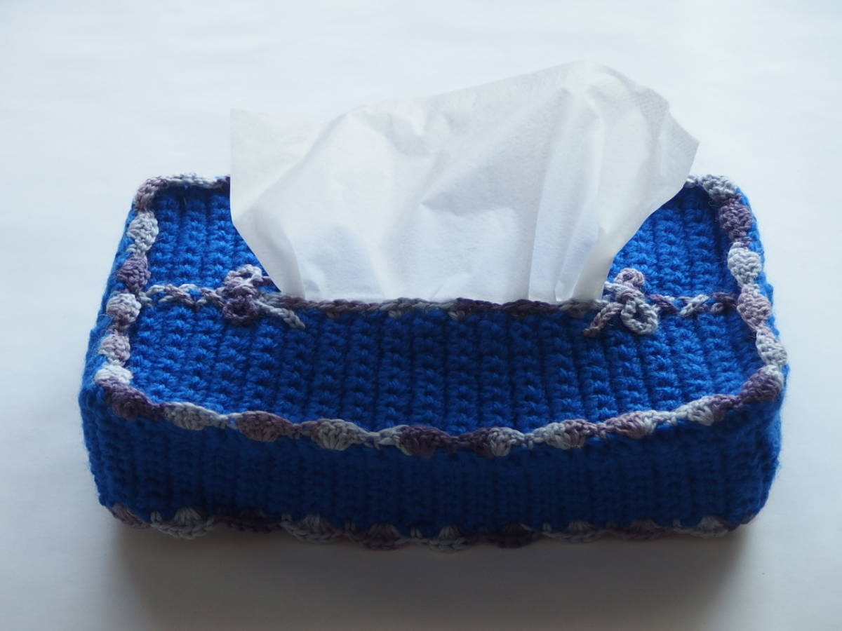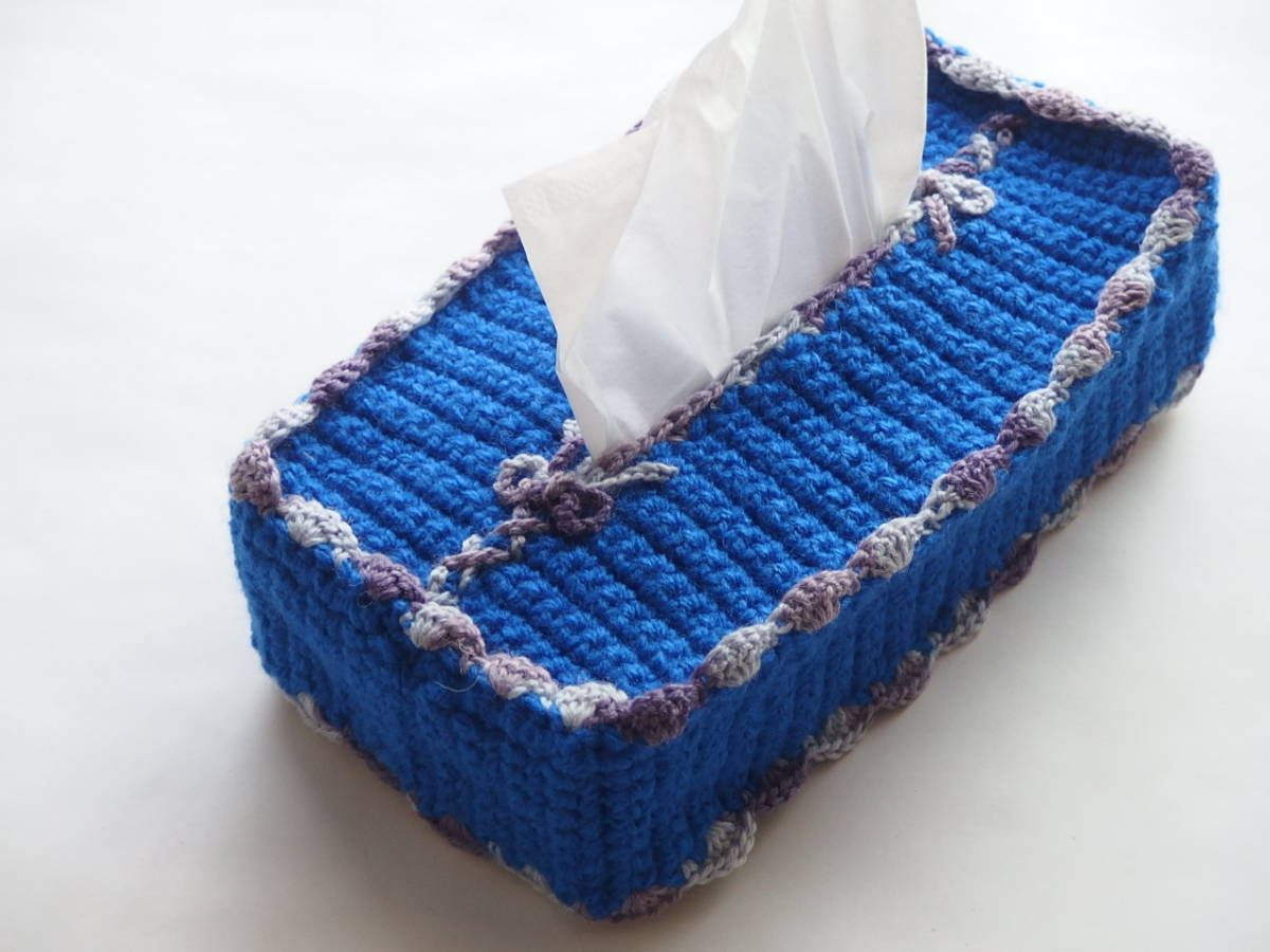 商品説明 | ボックスティッシュにかぶせる手編みのカバーです。 手作りの1点ものです。即決で出していますのでお早めにどうぞ。 青、ポイントとして灰色、うす紫を織り込んであります。糸は新品になります。 約11㎝×約22.8㎝×約4.4㎝の『エリエール』にかぶせて撮影しました。『ネピア』、『スコッティ』など大体この程度のサイズだと思います。 リビング、お部屋などにいかがでしょうか? ※ご家庭で使っていただくために作ったものです、転売、撮影目的など、他の目的での入札、落札はご遠慮ください。 |