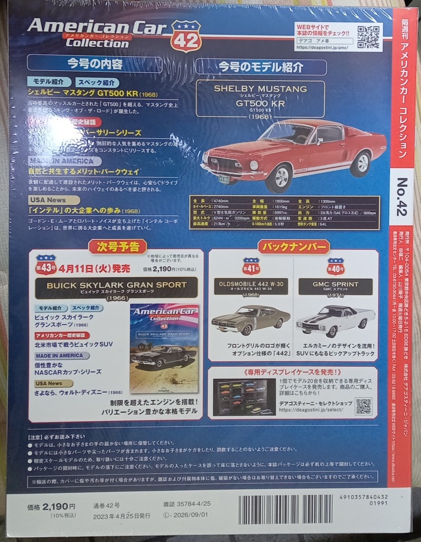 ☆ディアゴスティーニ No.42 1/43 アメリカンカーコレクション シェルビー マスタング GT500KR(1968)☆新品未開封品