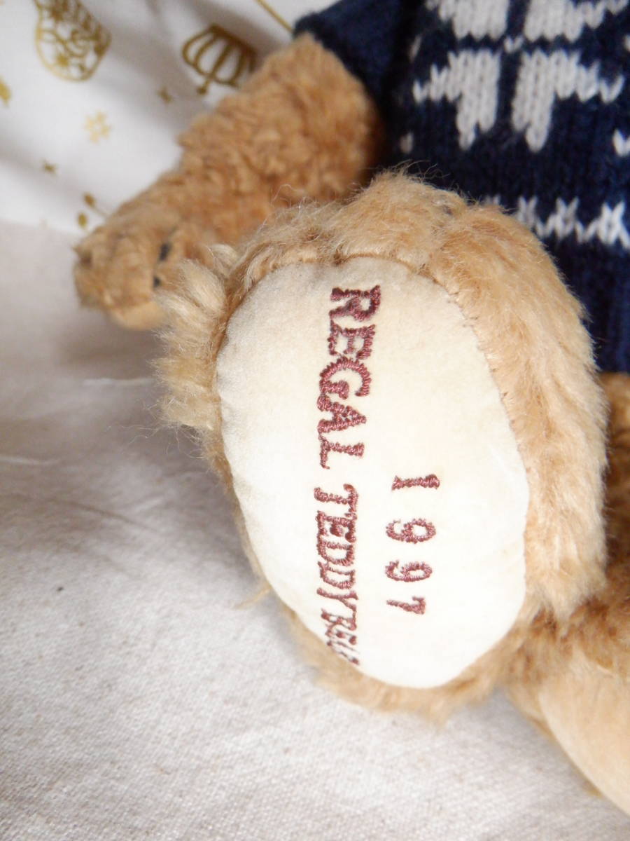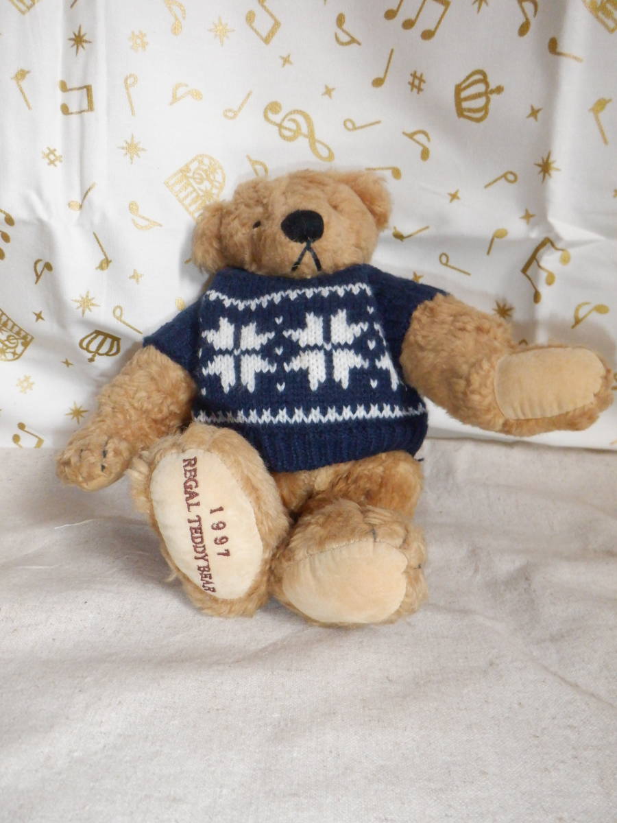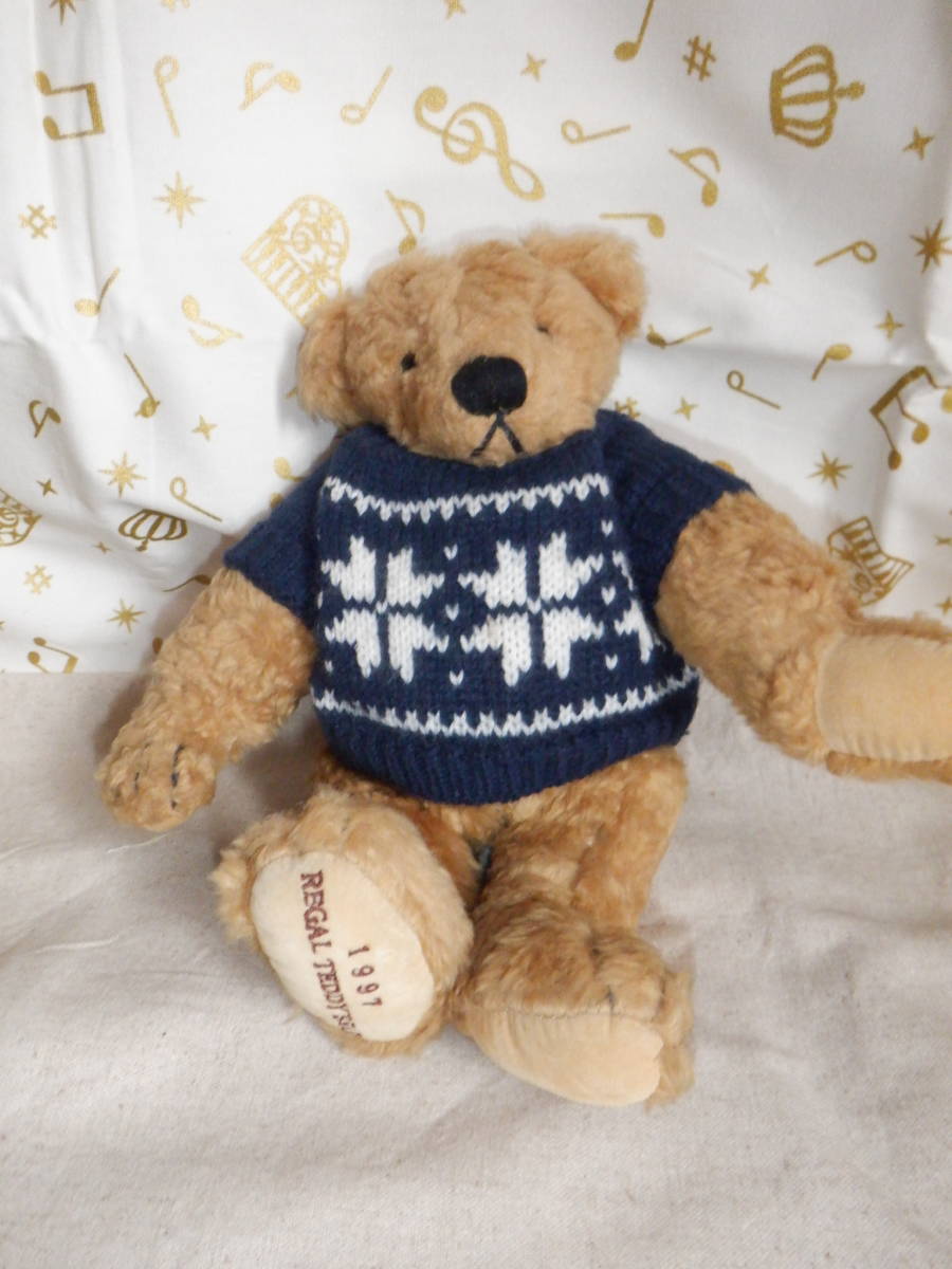 『REGAL TEDDY BEAR(リーガルテディベア)1997年 セーター姿』~高さ 約25cmです。自宅にて長期保管品につき多少の使用感がありますのでご理解いただける方のみ入札をお願いいたします。長期保管品につき現状渡しとなります。ノークレームノーリターンでお願いいたします。神経質な方は、入札をご遠慮下さい。新規の方・悪い評価が多い方の入札は、こちらの判断で取り消すことがあります。