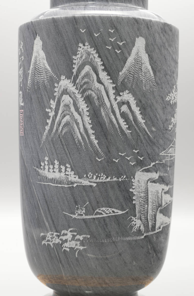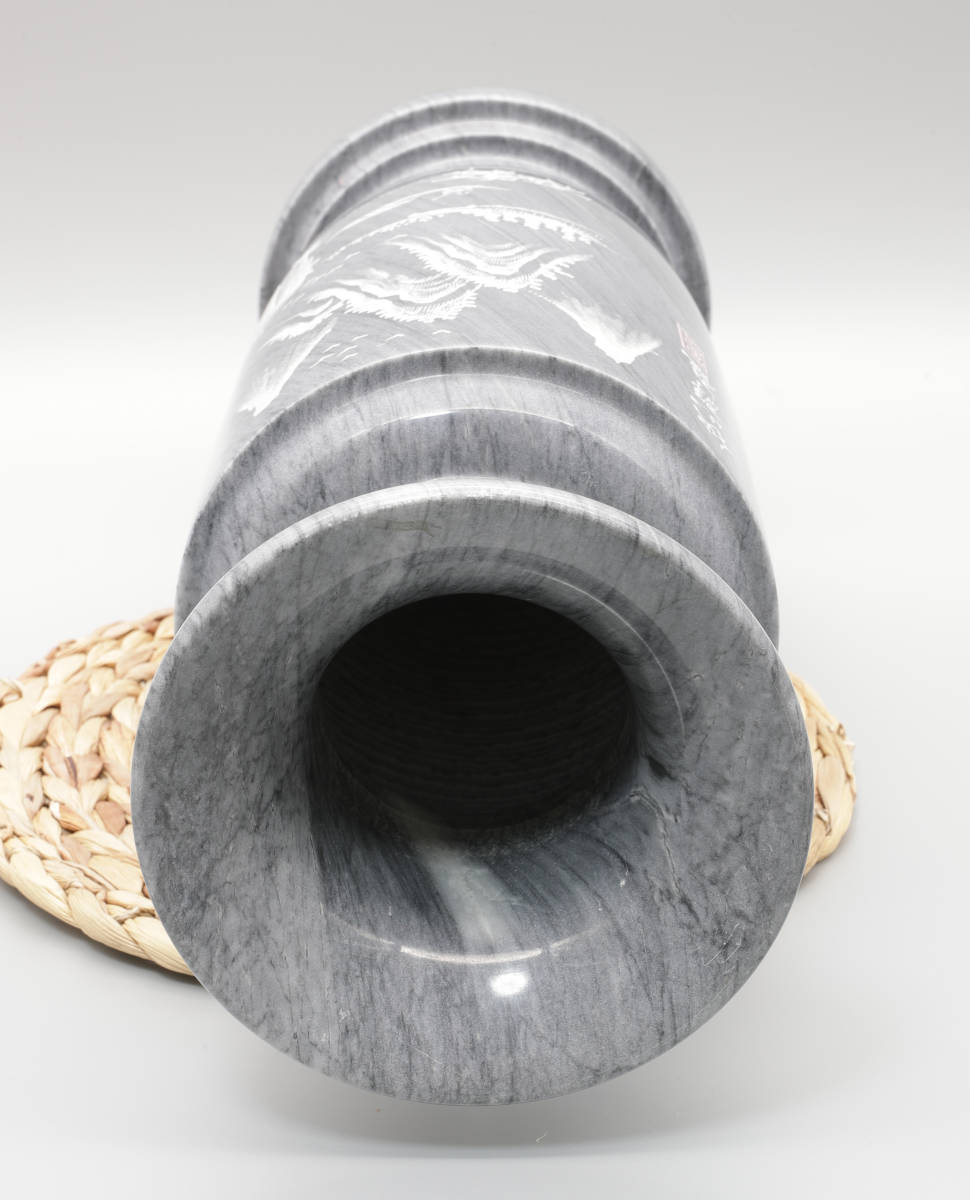 大理石製水画花器 花瓶 秋山群鶴 定盛 高約46cm×径約18cm 重量約10kg
