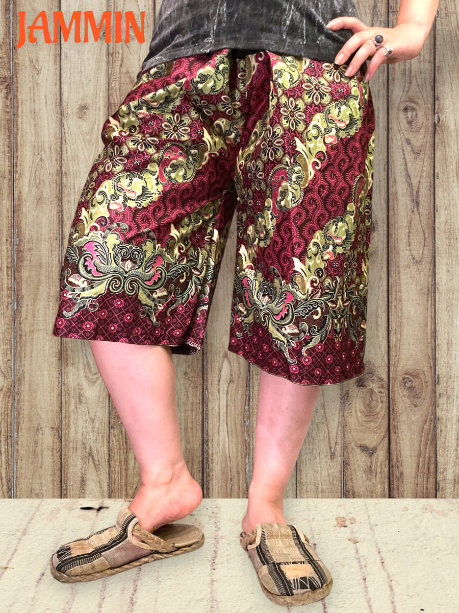 バティック花柄ゆるめハーフパンツ★男女兼用★エスニック★ヒッピー
