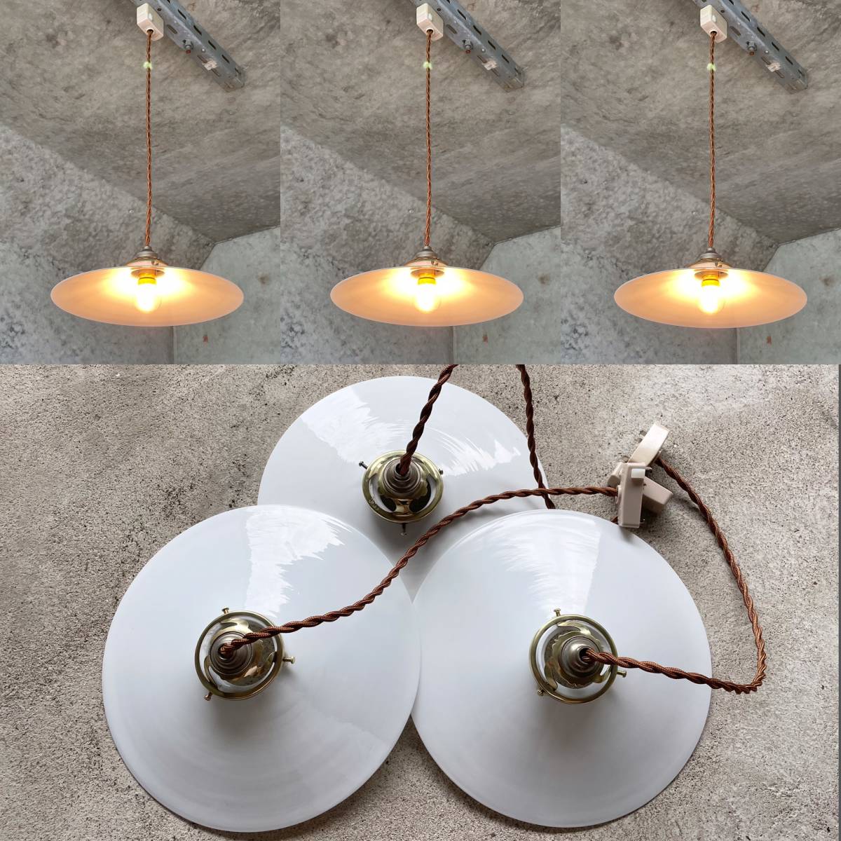 3個セット!【merci】フランス 吊り下げ ミルクガラス シェード ランプ 古道具 店舗什器 カフェ アンティーク 古民家 蚤の市
