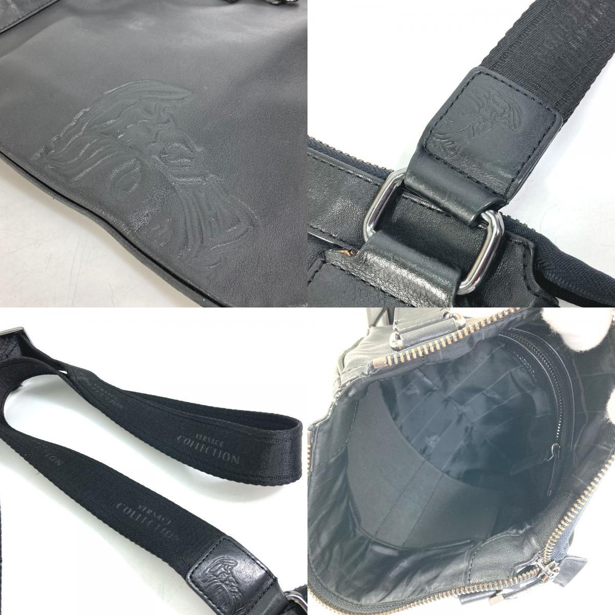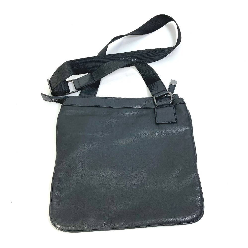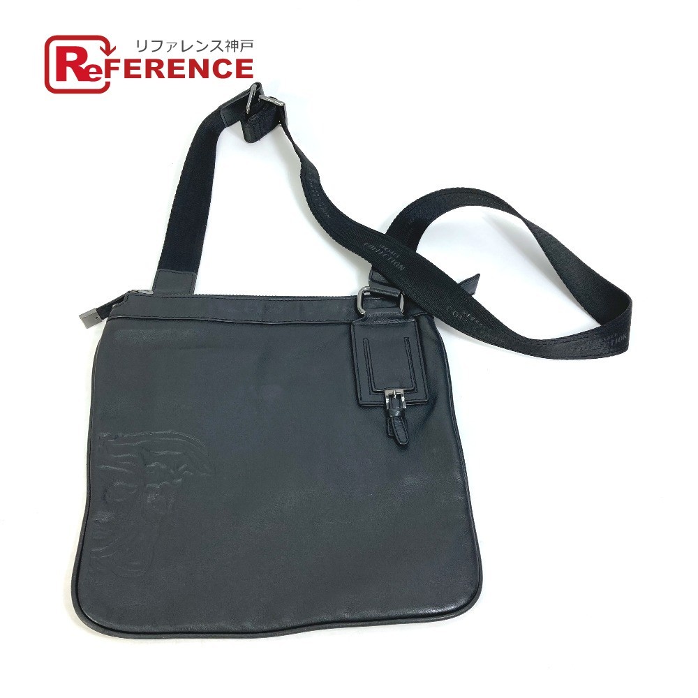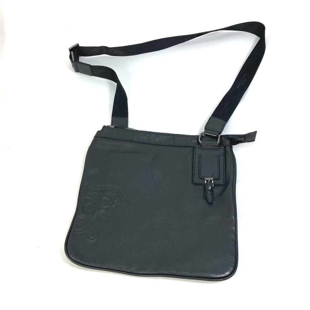 VERSACE ヴェルサーチ 斜め掛け メデューサ カバン ショルダーバッグ レザー ブラック メンズ【中古】