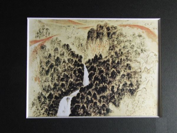 大山鎮、【不動七重の滝(吉野)】、希少な額装用画集より、新品額装付、状態良好、送料込み.