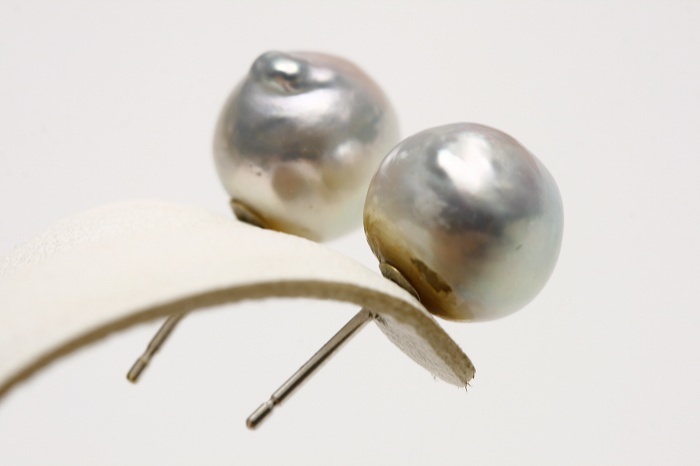 調色加工の施されていないナチュラルカラーのアコヤパールピアスです。 清涼感溢れる色合いはお顔元を涼しく彩ってくれます。 アコヤ大粒サイズで抜群の存在感をアピールいたします。 | |