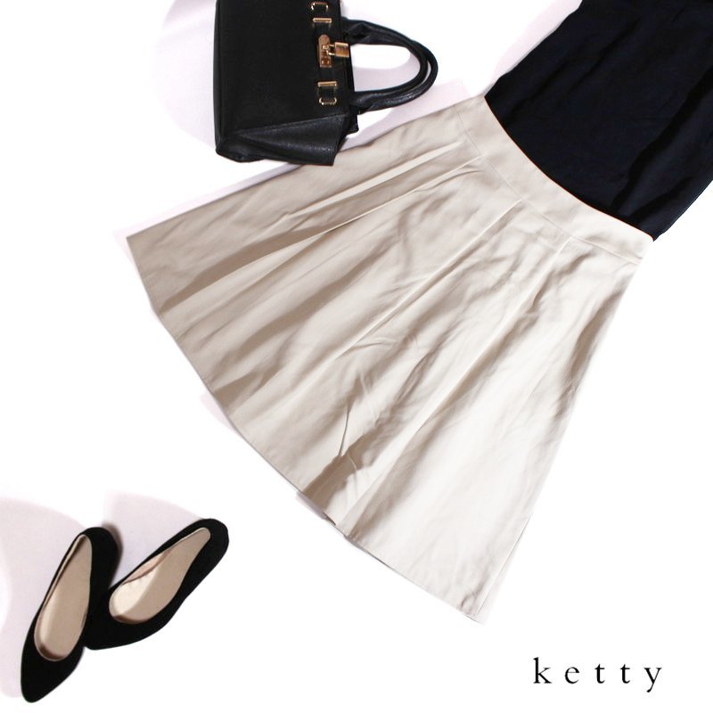 美品 ketty ケティ ■ 春 夏 シンプル ポリエステル スーツ Aライン フレアスカート 2 9号 ベージュ