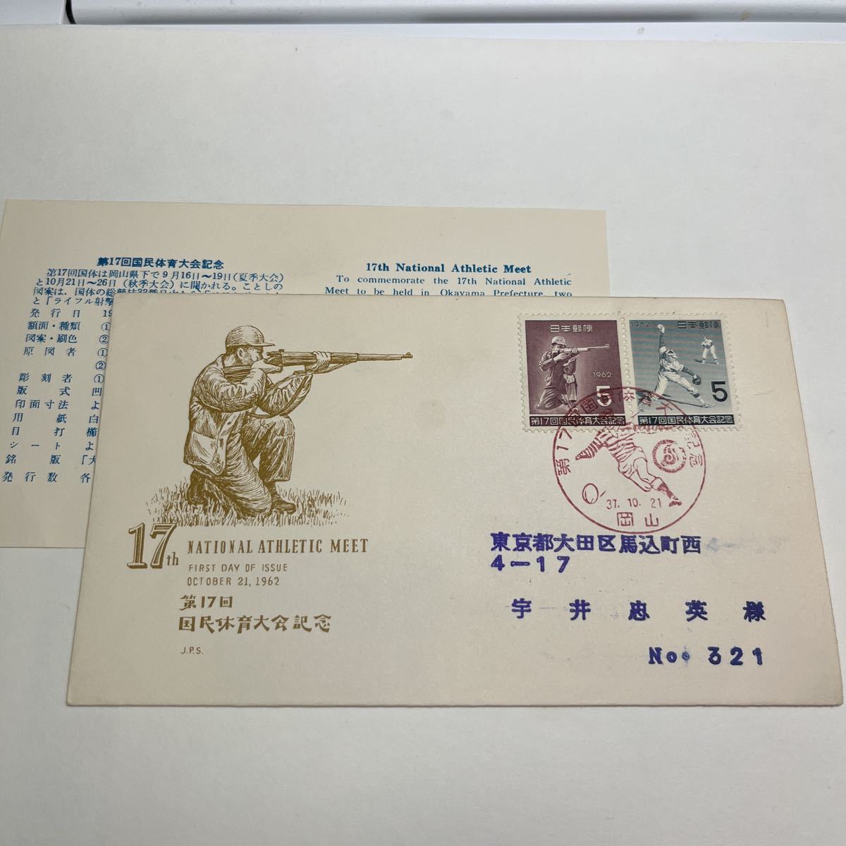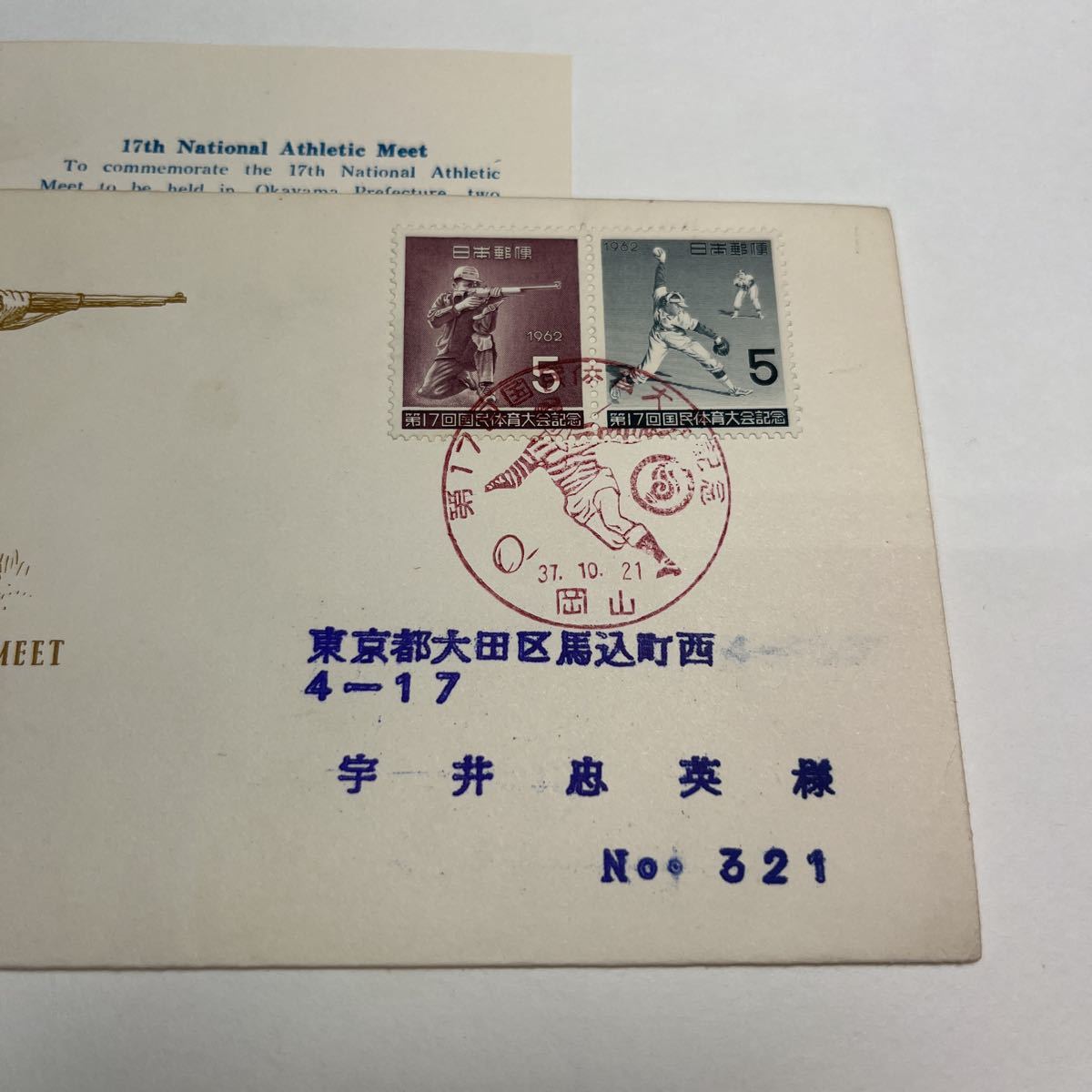 『ア』第17回国民体育大会記念切手【送料84円】実逓カバー 初日カバー First day Cover岡山印 昭和37年