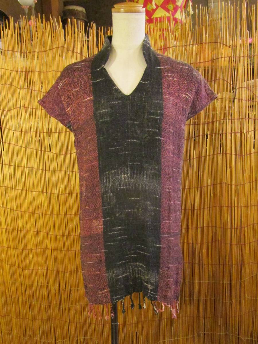 ①訳あり*ジョムトン生地*小さめサイズ*キャップスリーブ*フリンジ*ミニワンピース