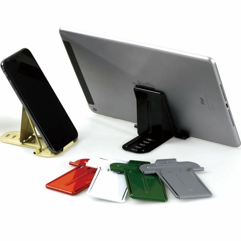 折り畳み式のガジェットスタンドです。大きさはスマホスタンドやタブレットスタンドとしてもちょうど良いサイズ感。
