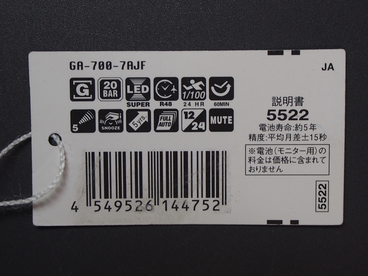 商品名 | G-SHOCK BASIC GA-700-7AJF 店頭販売用タグ |