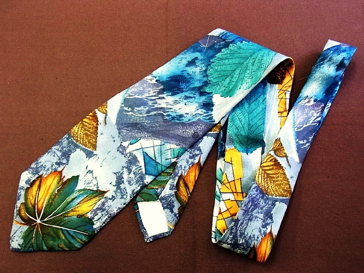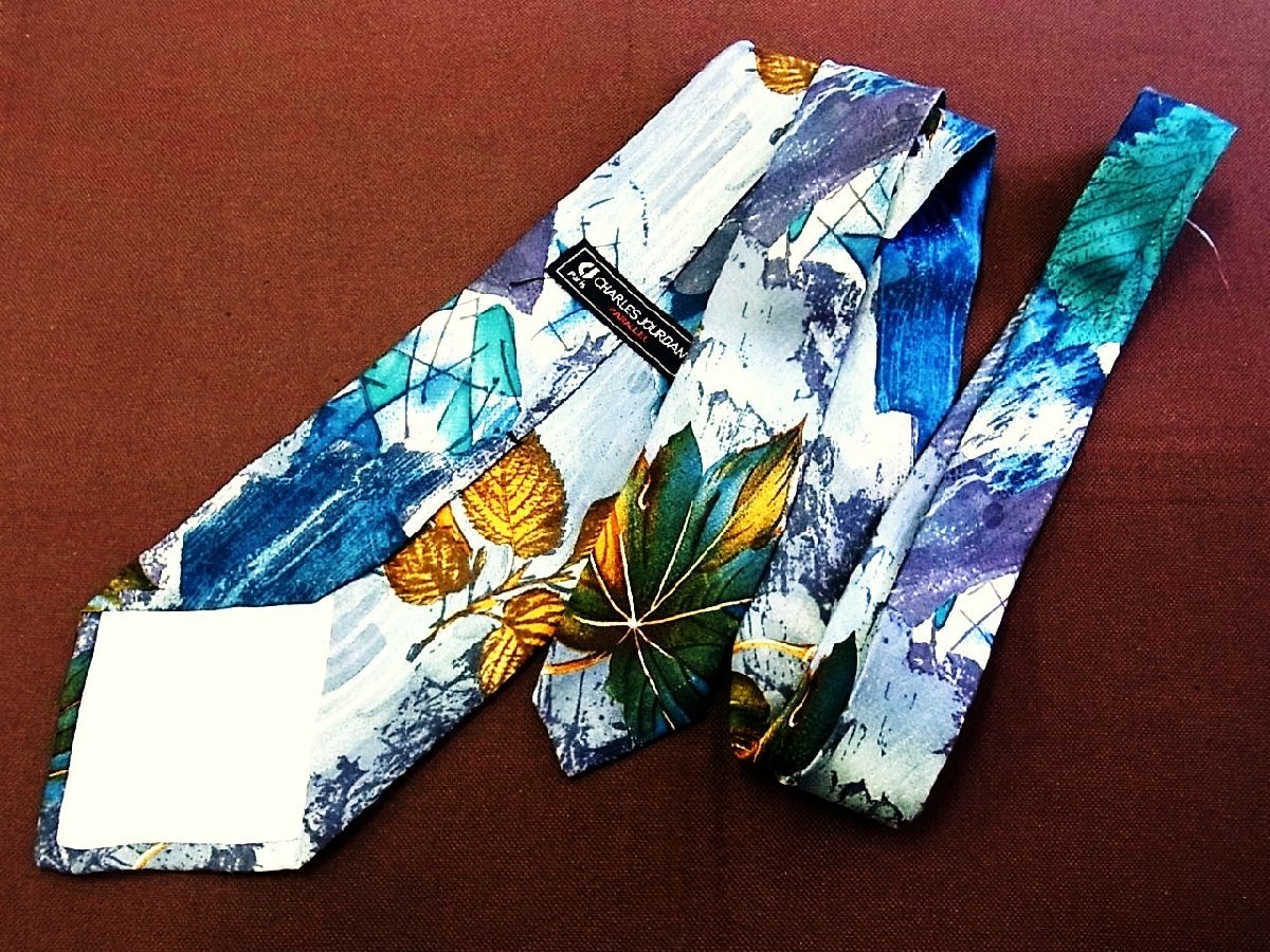 ♪25817D♪状態並品【葉っぱ 植物 柄】 シャルルジョルダン【CHARLES JOURDAN】ネクタイ