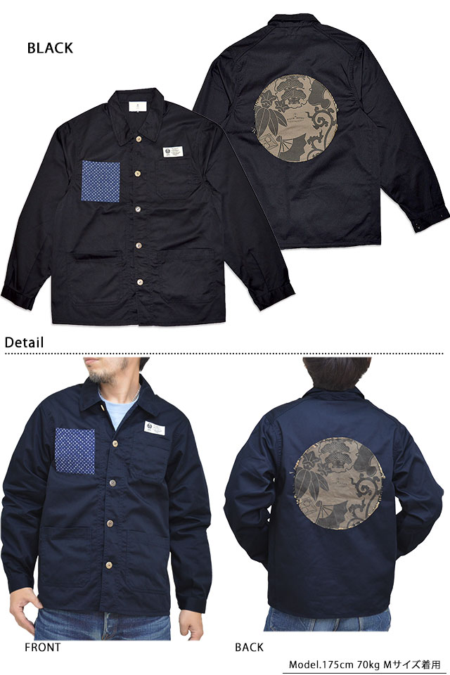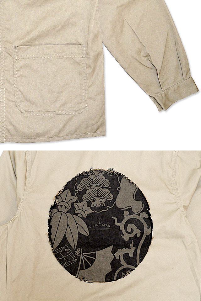 着た人、それを見た人が笑顔になれる、他にはないデザインを提供し続けている「喜人」さんから「クレイジー和ボタンブルゾン(KJ-12810)」のご紹介です。 和の雰囲気が好きだけど、アウターやブルゾンに和柄を入れ過ぎるとヤンチャっぽく見えてしまう、というお声から誕生したシンプルなブルゾンです! プリントを入れた別生地を円状にカットし、背中に貼り付けました。 ボディーには軽い羽織り心地のものを使用しており、春先までお楽しみ頂くことが出来ます。 | ||||||||||||||||||||