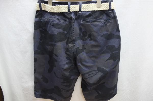 ★送料割引!ショートパンツ ゴルフパンツ カモフラージュプリント ダメージ加工綿布 M W実寸約82cm 紺系 OIL CAKE★未使用格安!