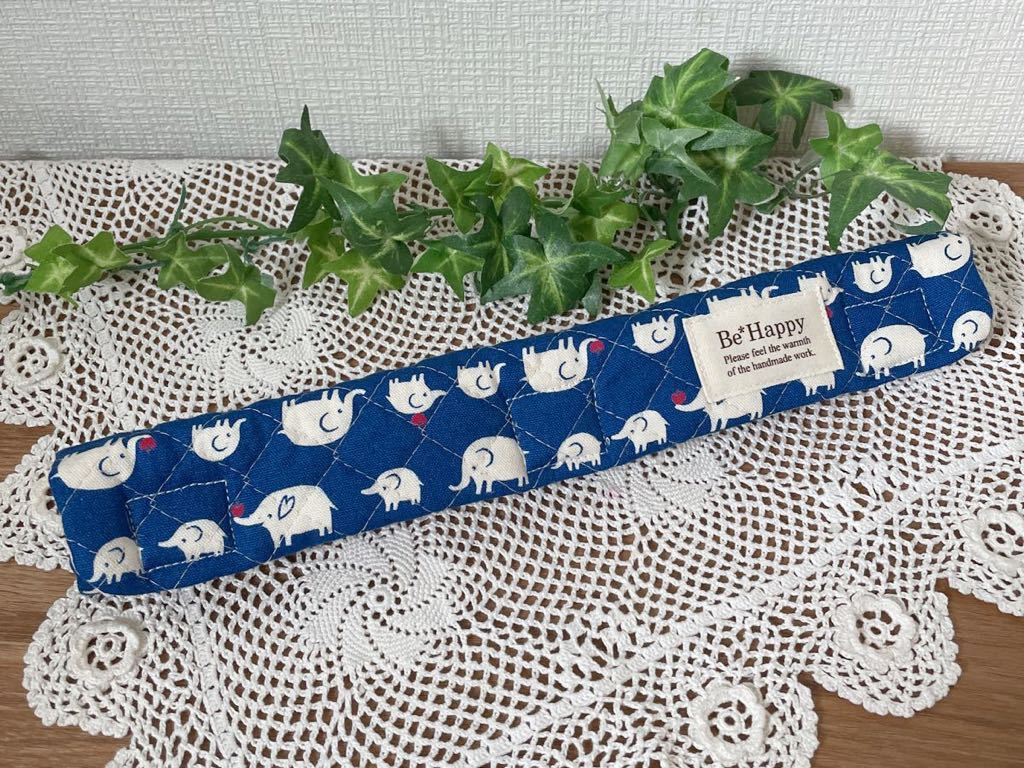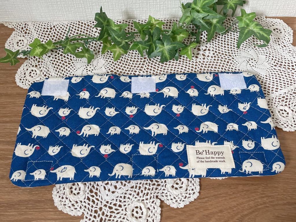 221 水筒ひもカバー ハンドメイド ぞうさんの親子 ブルー