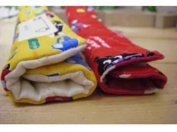 スナップボタンが外れてしまいあまり使えなかったことがあるので、長く使ってもらいたいのでマジックテープどめで作製しています。