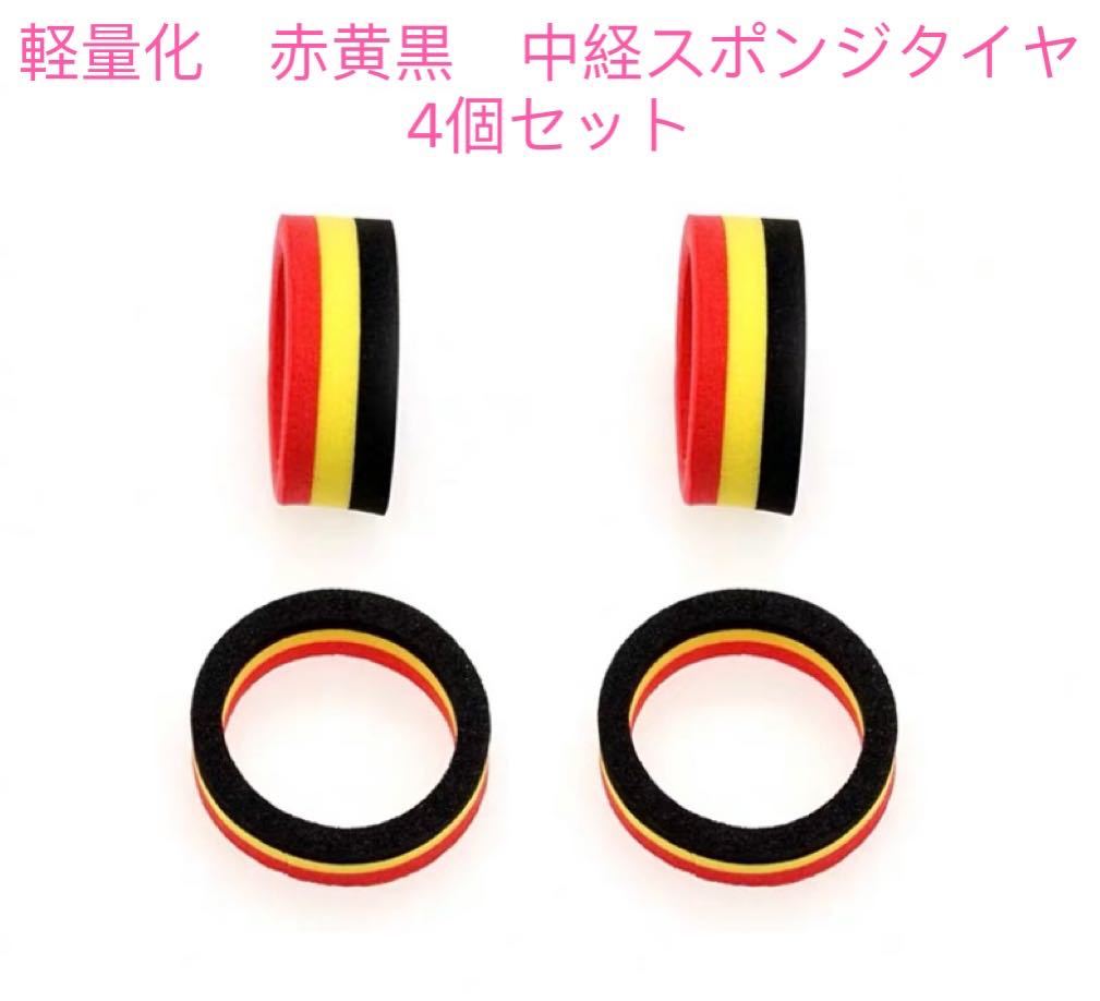 ミニ四駆 軽量化 赤黄黒 中経スポンジタイヤ 4個セット