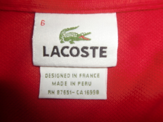 送料無料 90's VINTAGE LACOSTE ラコステ フレラコ ペルー製 フランス デザイン ポロ シャツ 赤~オレンジ 6 旧タグ カットソー ンテージ