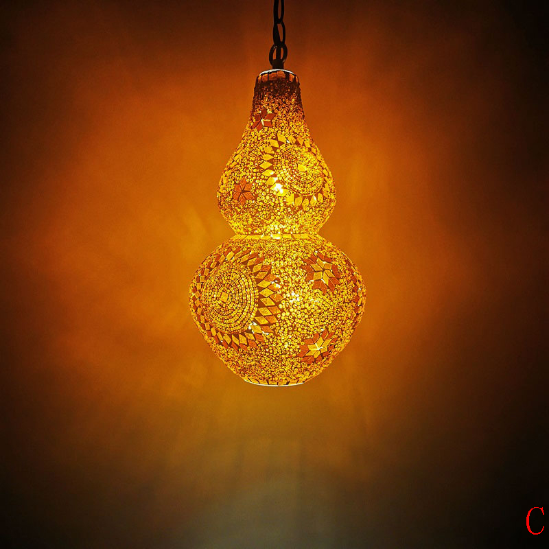 【素材】:ランプ:手作りガラスモザ イク 手動貼り付け / 本体: 鉄 表面銅メッキ