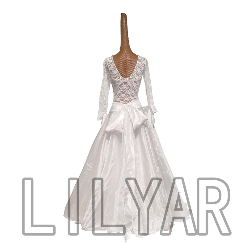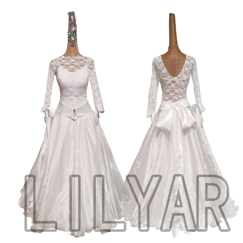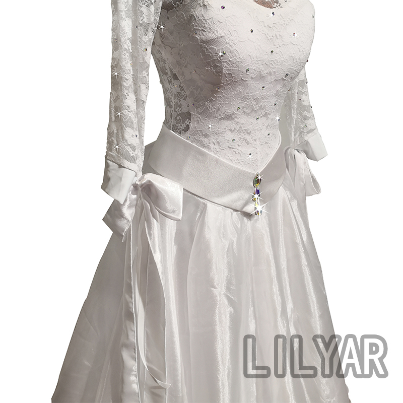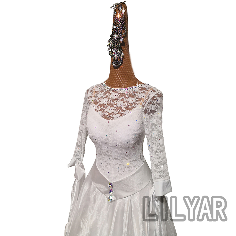 新作 レディース社交ダンス衣装 練習試合ダンスドレスワンピース サイズ調整対応 レース付き ホワイト S~XXL