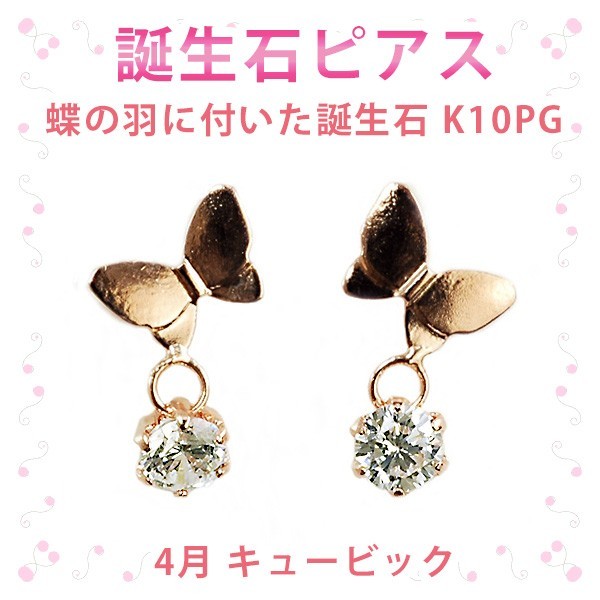 蝶の羽に宝石を付けた、誕生石シリーズのピアスです。