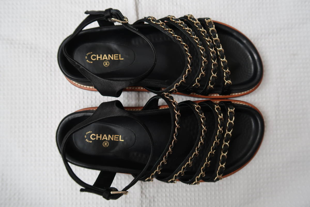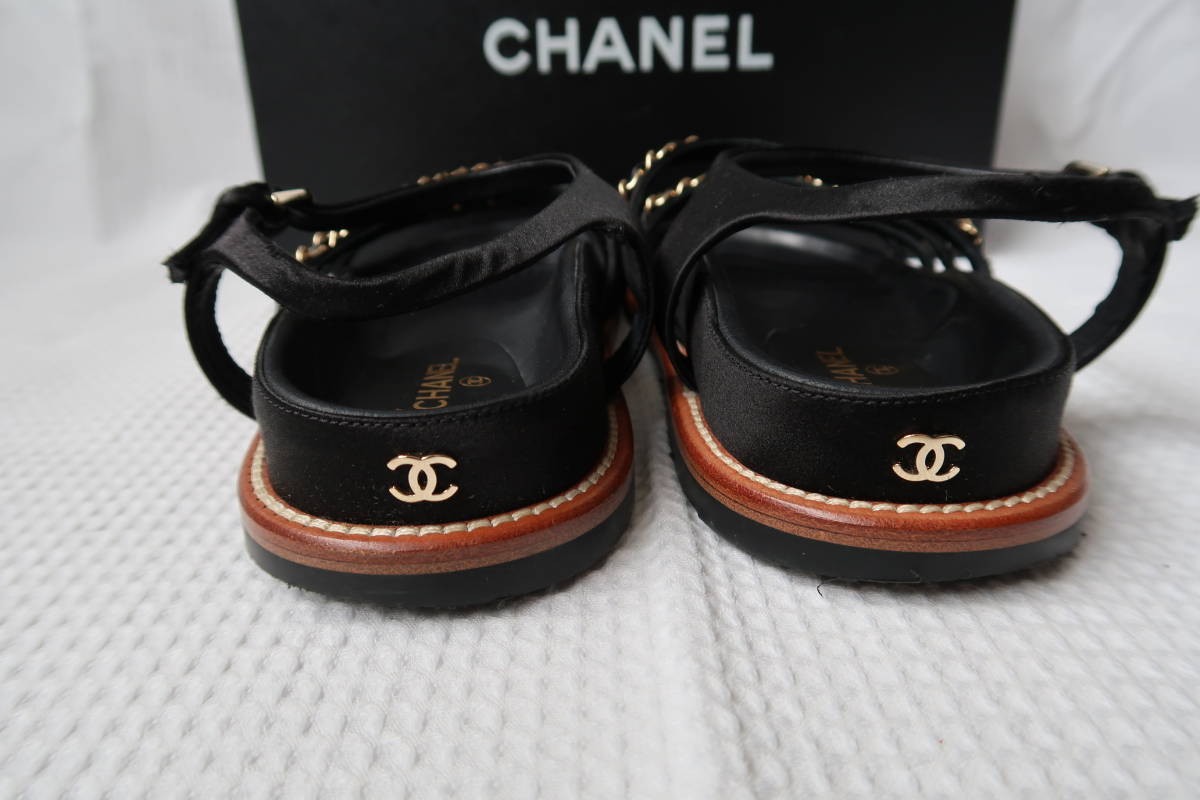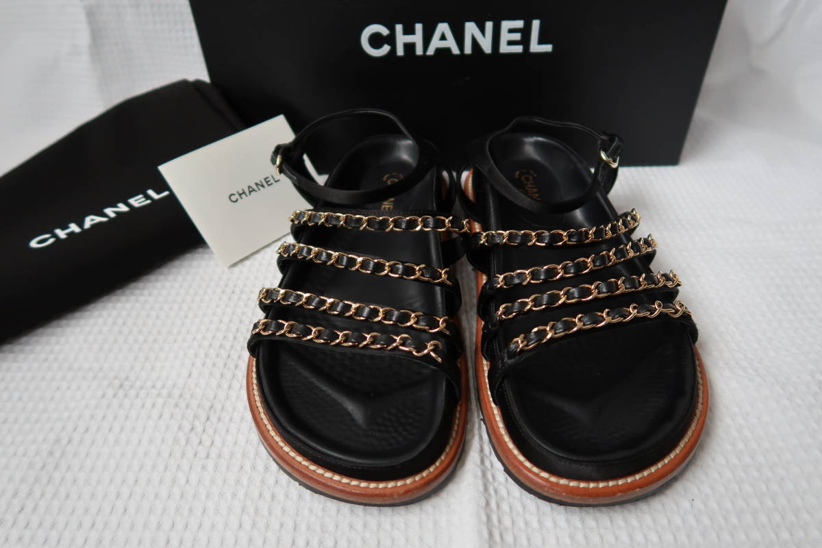 値下★シャネルCHANEL★美品★チェーン サンダル 36.5 黒