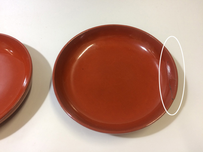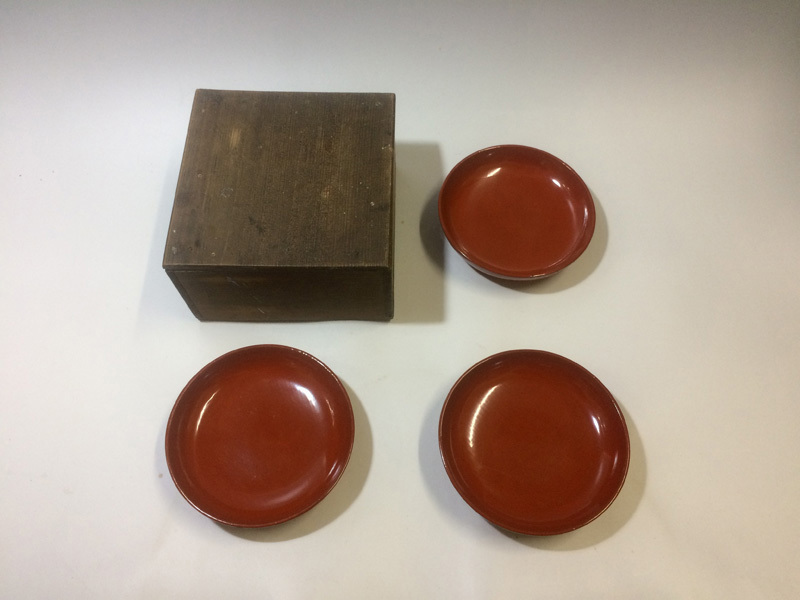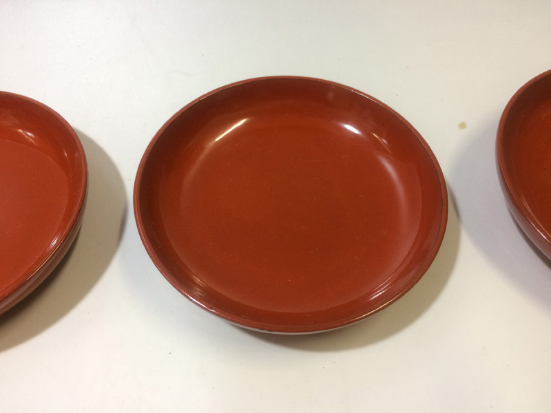 スローライフな人たちに. . . 昭和レトロ 漆 丸皿(朱) 銘々皿3枚揃 39/3_5