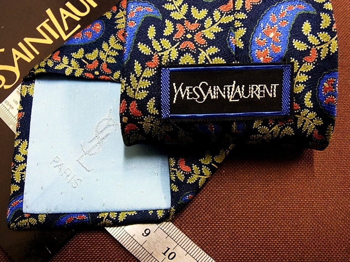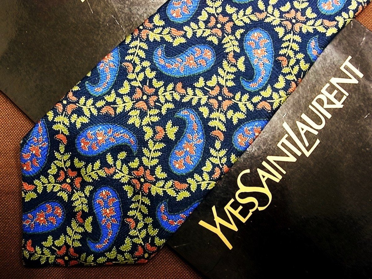 ♪24357C♪良品【草花 植物 ペイズリー 柄】サンローラン【YSL】ネクタイ
