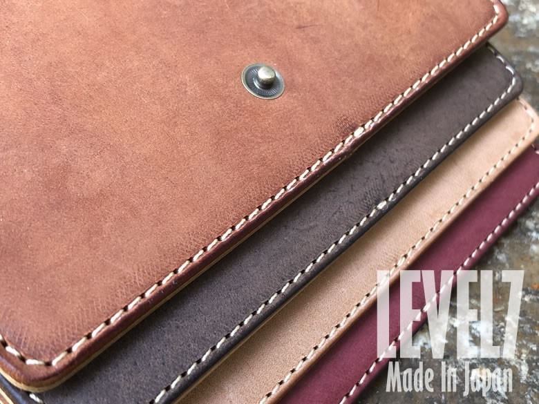 | ■イタリアンレザー【SOLFONATO】について EURO B.S社にてなめされた100%フルタンニンの生成りのヌメ革、部位は、ショルダー(ダブル)を使用。 イタリアで一般的に流通してる生成りのヌメ革より、水分、油分の少ないカラッとした仕上がりの【SOLFONATO】を使用しています。 ■たつの市でなめされたオリジナルレザー当社で使用しているレザーの多くが、兵庫県たつの市のタンナーでなめされた、当社オリジナルの天然ベジタブルタンニンのヌメ革です。傷、ムラ、トラなど少なく、ハリのある硬めの仕上がりに成るようなめされています。 タンナーの技術により、革の個体差も少なく非常に上質なレザーです。 素材を大切に、耐久性、実用性を考慮し、必要最低限の加工を施したLEVEL7のオリジナルレザーです。 こちらの製品では、インナー部分にしている革です。 ■アンティーク足踏みミシン LEVEL7では、一部の製品を除き、このミシンが無ければ、仕事にならないとまで言わしめた名機SEIKO TE-5にて、全縫製を行っております。 大きな特徴として、糸締りが良いことが上げられます。 この立体的な縫目は、他のミシンでは、再現できない唯一無比のステッチです。 SEIKO TE-5は、シンガー(SINGER)社の17ミシンを基に造られた日本製のミシンです。17ミシンは、主に袋状の製品(バックなど)、小物を製作するために造られた腕ミシンで、100年以上前に誕生し、現在も同規格のミシンが生産されている名機です。 LEVEL7では、そんな17ミシン【SEIKO TE-5】を発売当初と同じ、人力の足踏みミシンとして縫製を行っています。こちらの製品では、インナーのカード入れの裏止め部のみにミシン縫製を採用しています。 ■インナーについて インナー部分には、約1.2MM-1.4MMに漉いた革を用い、パーツそれぞれの革の床面(裏側)及び、コバ(裁断面)処理を施し仕立てています。 そのため、耐久性はもちろん、耐水性にも優れた製品に仕上がっています。構造上、負担のかかる部分には、ダブルステッチを採用し縫製強度を保ち、パーツの先端部には、捻を入れ込み、コバ処理を行い耐久性を向上させています。 ※耐水性につきましては、素材を大切にするため、最低限の処理を行っているため、完全に水を弾く、または、防水というものではございません。 あくまで、革は、対水に対し弱いとご理解して下さい。 ■コバ処理と床面処理 当社では、すべての製品パーツの裁断面にコバ処理を行っています。 断面部を革包丁、ヤスリで整え、革の毛羽立ちを押さえる仕上剤を塗り、磨き上げ、更に細かいヤスリで面を整え磨き上げを繰り返し、 蜜蝋を主な成分とした当社特性ワックスを塗りこみ、低温で焼き締めるまでの処理を行っています。 床面については、革の毛羽立ちを押さえる仕上剤を塗りこみ、毛羽立ちを抑える処理を行っています。 製品を購入する際、見えにくい部分ですが、切りっぱなし、漉きっぱなしで制作された製品とは、耐久性、坊汚性、耐水性、すべてにおいて勝り、妥協をせず、コダワリを持って制作しています。 |